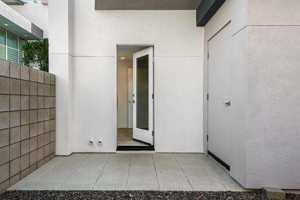 The perfect blend of indoor/outdoor living in this modern home located in the heart of downtown Palm Springs! Convenient to restaurants, shops, and all that downtown has to offer. SOL is a gated community of 46 private residences. The home's contemporary design features an open floor plan with expansive walls of glass and collapsing doors, seamlessly merging your entertaining spaces making it ideal for gatherings. Step inside to soaring ceilings and natural light. The kitchen is a standout with its oversized island, bar seating, ample cabinetry, and sleek quartz countertops. The home has two Primary Suites--one on each level--providing excellent separation and privacy. The upstairs loft offers versatile space that can serve as a sitting area, home office, or personal gym. Outside, enjoy your private pool and spa area, complete with a cozy outdoor fireplace for those cooler Palm Springs evenings. Recent upgrades include owned solar panels, dual variable speed Trane heat pumps, an electric car charger, a tankless water heater, pool pavers, Pentair Wi-Fi equipment, a Culligan water softener, remote electric shades, and enhanced landscaping with lighting. Combining luxury, functionality, and modern design.