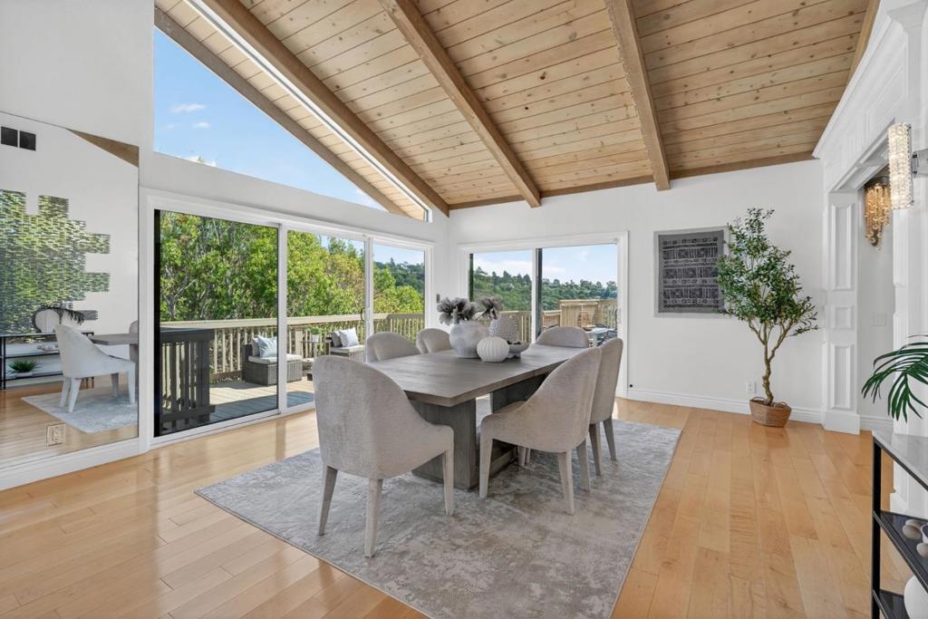 Perched in the prestigious Lakeview neighborhood of Hillsborough, this gated residence blends refined living with breathtaking design and panoramic views. A spacious motor court and two-car garage welcome you to a home of distinction. Step into the elegant foyer, where classic columns frame a soaring open-concept living area. Vaulted ceilings with exposed beams and floor-to-ceiling windows flood the space with natural light and showcase sweeping vistas. The expansive living room features a dramatic stone fireplace and flows into a chefs kitchen with high-end stainless steel appliances, tray ceiling, and a generous breakfast barperfect for everyday living and entertaining. This four-bedroom home includes a luxurious primary suite with a private sitting area and spa-inspired bath, complete with soaking tub, frameless glass shower, and double vanity. Located in the serene Lakeview area near top-rated schools, boutique shopping, and dining, with easy access to Hwy 280, 101, SF, Silicon Valley, and SFO. The land has potential for subdivision, subject to city approval.