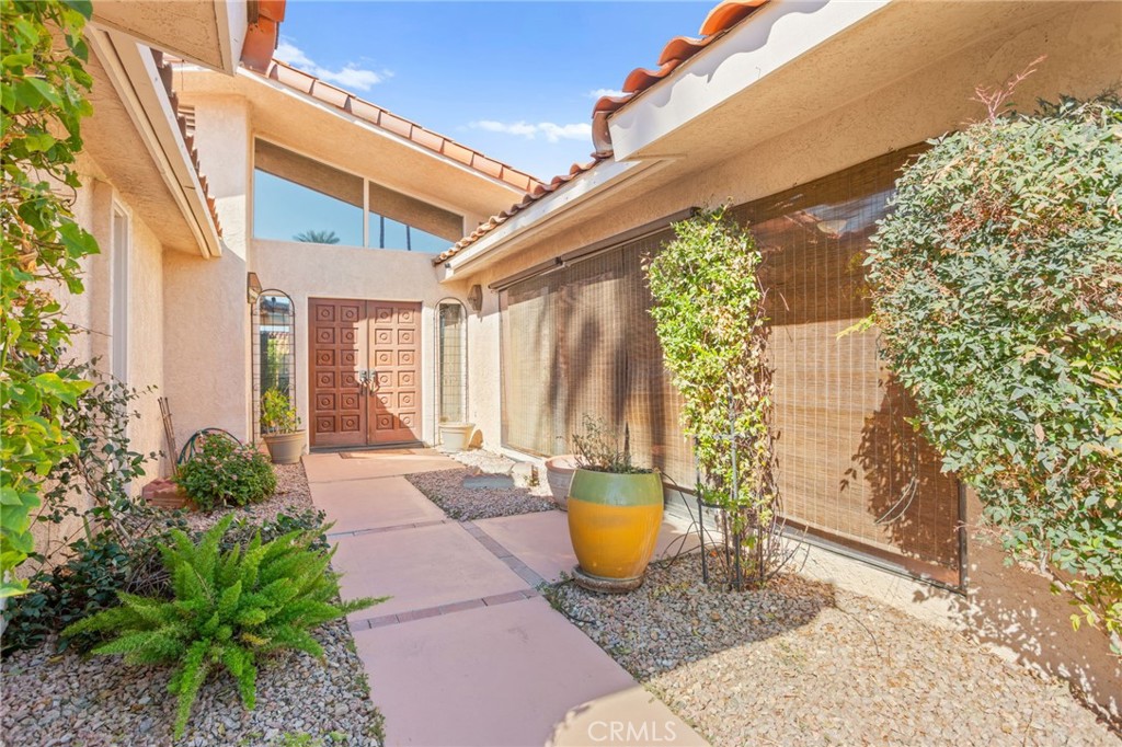 Welcome to 36529 Via Abeja, a beautifully maintained 2,441 square-foot, single-story ranch-style home, favorably situated in a quiet cul-de-sac. Positioned along the Rancho Mirage border, the private gated community of Rancho Village offers a perfect blend of comfort, style and the enjoyment of resort-inspired living. This peaceful home features 3 bedrooms, 2.75 baths and showcases open airy interiors with a timeless design. As you enter through a private courtyard, you step foot into a bright great room with vaulted ceilings, a stacked-stone fireplace and large windows that fill the home with natural light. The remodeled kitchen with newer top brand appliances includes generous cabinetry, a breakfast nook and a seamless connection to the dining and living areas; ideal for everyday living or entertaining. The primary suite provides privacy and comfort with dual vanities, a soaking tub, and direct patio access. The two additional bedrooms (including their own private bathrooms) can also be used as and office or a creative space. Easy access laundry room and attached 2 car garage. Enjoy the easy-care backyard, perfect for alfresco dining or quiet evenings under the beautiful desert sky. Rancho Village residents reside in a secure, well-manicured neighborhood with only 80 homes. Low HOA dues include access to a large pool/spa, gym, recently updated clubhouse, 2 tennis and 2 pickleball courts, green belts, front landscaping and pest control for common exterior areas. Some of the photos have virtual staging to help visualize the home’s potential. No Tribal or Lease land, you physically own the land here! Whether you’re seeking a year-round residence or a seasonal getaway, this home delivers comfort, community charm, and effortless desert living. All just minutes from shopping, dining, golf, events and downtown Palm Springs. Don’t miss the opportunity to make it yours!