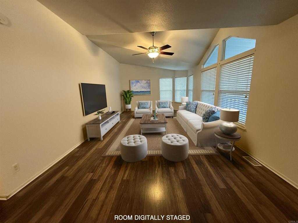 Home with a view located in the esteemed 55+ Madrid Manor community in San Marcos. This home features an open floor plan, comprising two bedrooms and 2.25 bathrooms. The interior boasts a spacious living room, a dining room, and a kitchen equipped with a pantry, ample counter space, a center island, and a breakfast nook. This well-maintained home includes a large primary suite with a tiled bath and a generously sized second bedroom. The front porch offers picturesque views of the surrounding hillsides. Residents of Madrid Manor benefit from a wide array of amenities, including a pool, spa, clubhouse, tennis/pickleball courts, a billiard room, a card/game room, and a library, in addition to numerous social events. Furthermore, the manufactured home has a 433 A permanent foundation. Thank you for your time and consideration. Call me for your private showing.