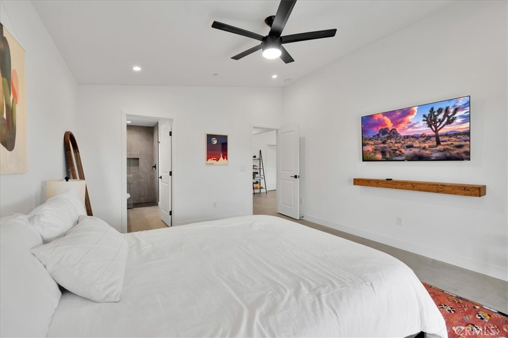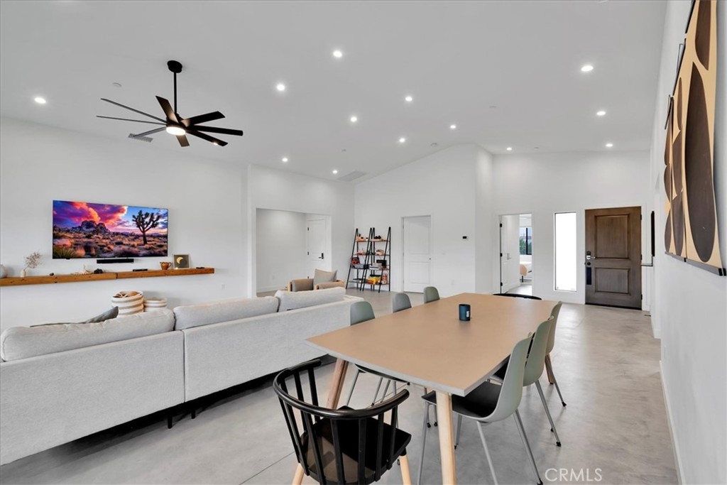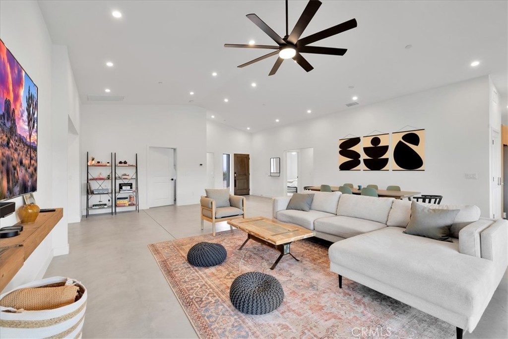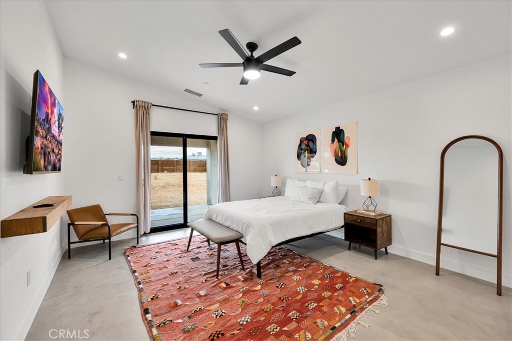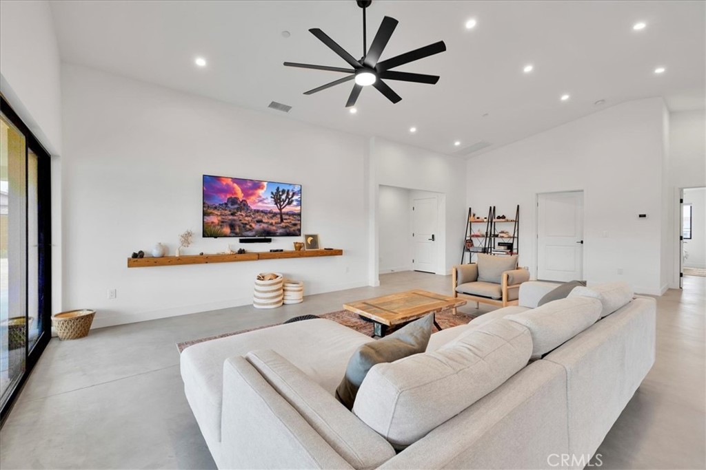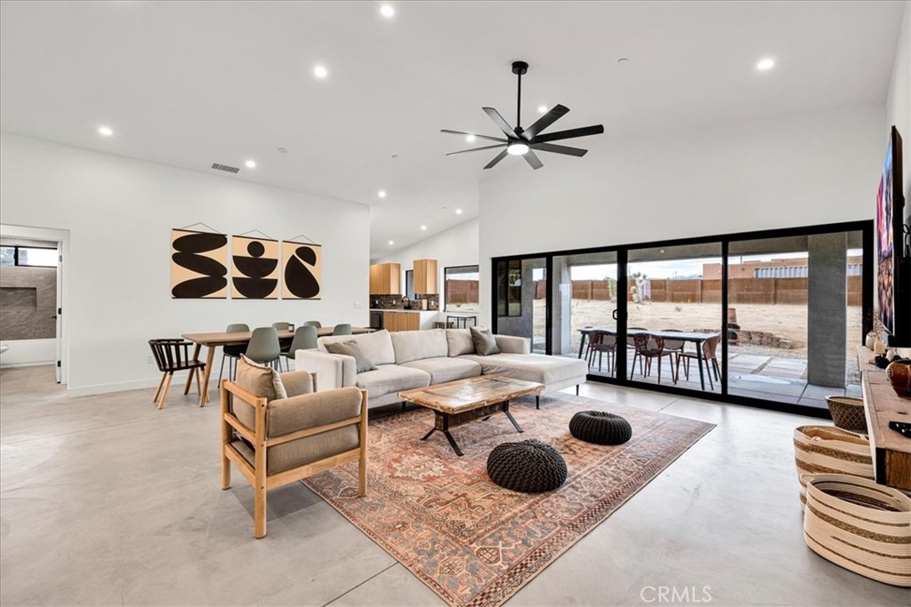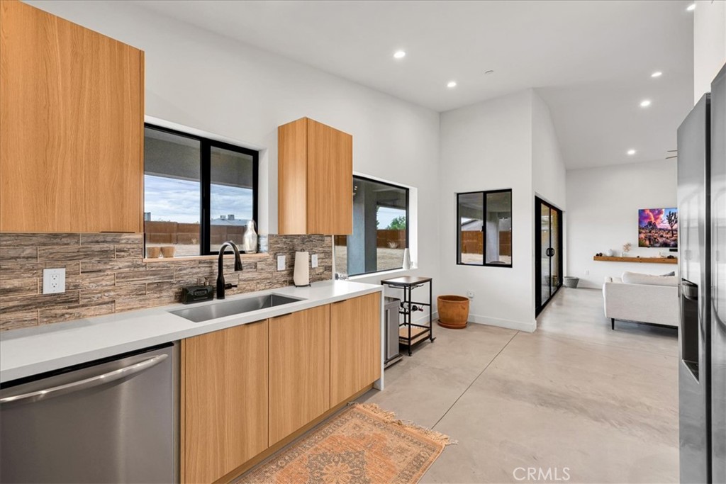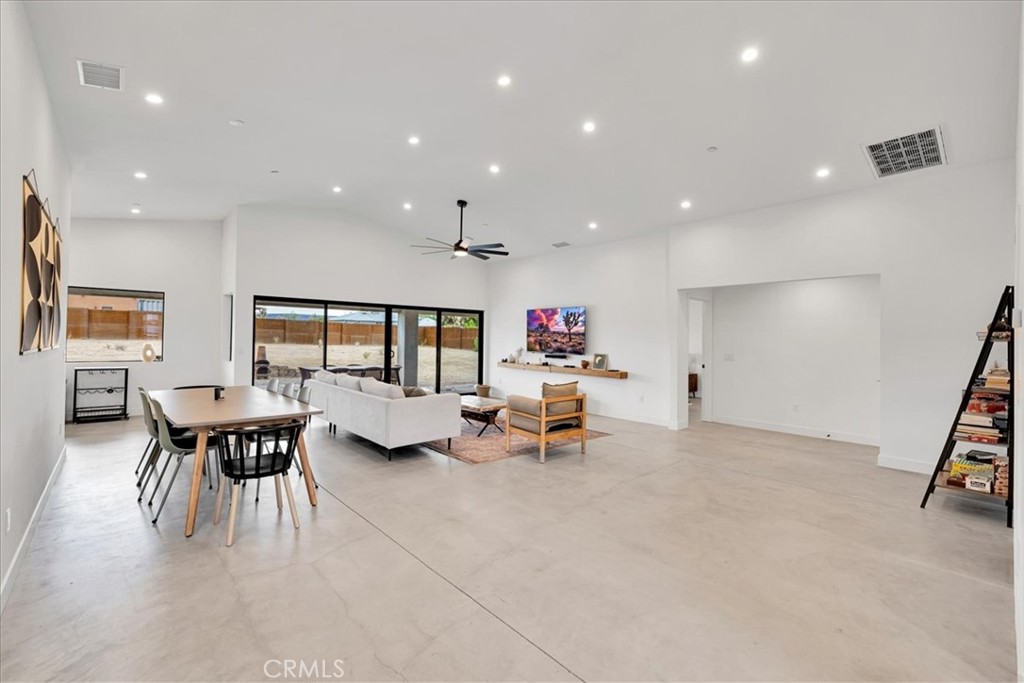 Stunning 4-Bedroom, 2-Bath Home on the Mesa in Yucca Valley! Set on a desirable corner lot with over half an acre of land, this 2022-built home offers the perfect blend of modern comfort and desert charm. Featuring 1,902 sq. ft. of open living space, soaring ceilings, and polished concrete floors throughout, this property is designed with both style and functionality in mind. The heart of the home is the expansive kitchen, complete with quartz countertops, stainless steel appliances, and a generous island that flows seamlessly into the spacious living room—ideal for hosting family and friends. Each of the four bedrooms offers plenty of room to make your own, while the primary suite is a true retreat with high ceilings, double vanity sinks, a huge walk-in closet, and a spa-like bathroom. Additional highlights include central heating and A/C, an indoor laundry room, and a covered back patio—perfect for enjoying peaceful mornings or relaxing evenings under the desert sky. This move-in ready home checks every box. Don’t miss your chance to own a modern desert oasis in beautiful Yucca Valley. Schedule your showing today!