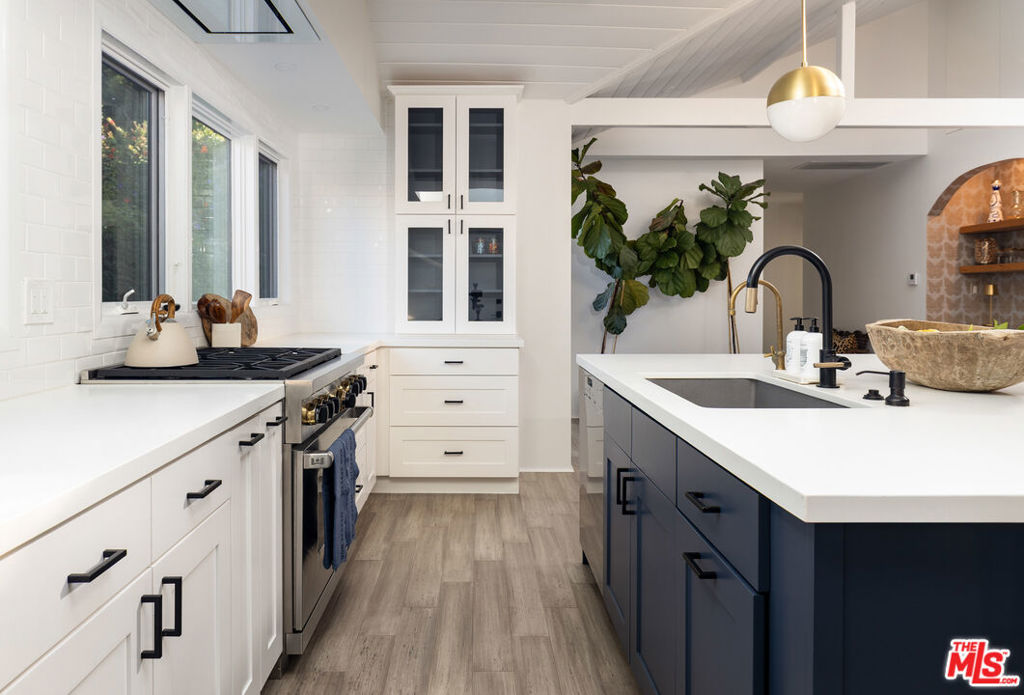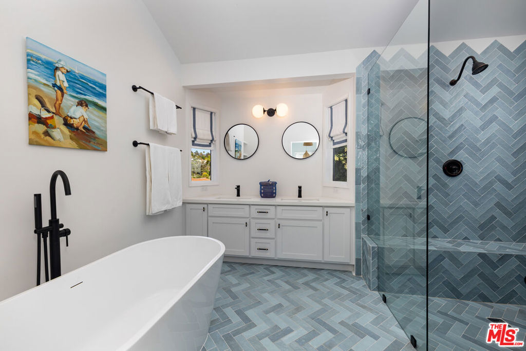 Set in the privacy of Santa Barbara's coveted Eucalyptus Hill, this beautifully reimagined farmhouse-style retreat is more than just a home. It is a story of style, comfort, and effortless California living. Thoughtfully remodeled, it offers the best of both worlds: tranquil ocean and mountain views paired with a rare sense of serenity, all just moments from everything Santa Barbara and Montecito have to offer. From the moment you arrive, a sense of welcome unfolds. A lush courtyard anchored by a glowing firepit sets the tone, a space made for morning coffee beneath the trees or relaxed evenings under sunset skies. Inside, skylights illuminate vaulted tongue and groove ceilings, exposed beams, and bamboo wood floors. Character and thoughtful touches make this home truly unique, with every detail from artisan finishes to a warm and well considered layout reflecting a sense of ease and intention. The heart of the home is the kitchen, a beautifully designed space with a generous center island, custom cabinetry, and professional grade appliances. It flows effortlessly into a dining area with a built-in banquette and a living room centered around a handmade cement tile fireplace that radiates charm and warmth. Life here extends seamlessly outdoors. French doors lead to an inviting patio with a built-in barbecue and a comfortable seating area, perfect for entertaining and dining under the stars. A refreshing outdoor shower adds a touch of coastal ease after beach days or time spent in the garden. A versatile shed with bamboo floors and lighting enhances the property, ideal as an artist's studio, home office, or serene retreat. Upstairs, an airy open concept bedroom offers a peaceful escape with vaulted ceilings, a cozy fireplace, and a beautifully designed bathroom that feels like a private spa. French doors open to a terrace framing ocean and mountain vistas, where a spiral staircase leads gracefully down to the backyard. This inviting space is perfect for unwinding, reading, or watching the sun rise and set, a daily reminder of the beauty that surrounds you. More than a home, this property is a place to slow down, savor the natural beauty around you, and experience the very best of California coastal living.