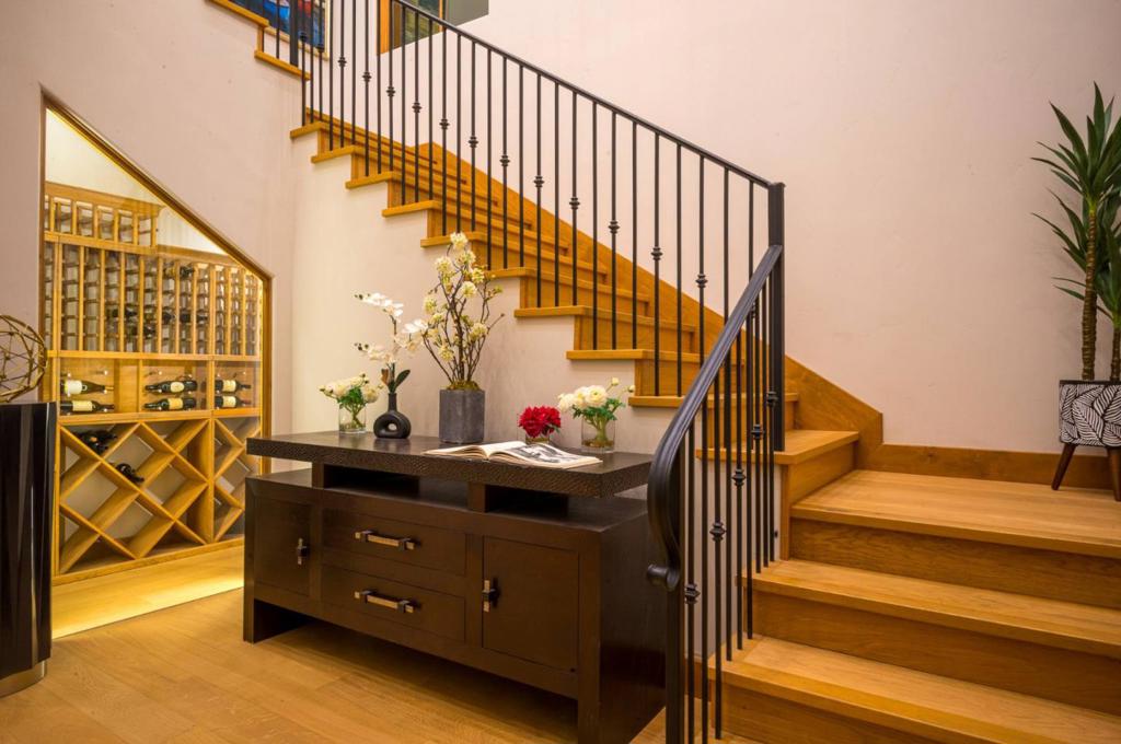 Cutting-Edge Design. Unrivaled Luxury. Ultimate Comfort. Situated on one of Willow Glens most beloved, holiday-lit streets, this brand-new home, just minutes from downtown and steps from Bramhall Park. Featuring 6 bedrooms, 4.5 baths, 4,000 SF of thoughtfully designed living space, a junior ADU and a detached 800 SF ADU ideal for multigenerational living. Enter through a striking 800-lb custom wrought-iron door into a grand double-height foyer soaring 22 feet, with wrap around stairs featuring custom metal railings, wide-plank luxury white oak flooring, a stunning wine cellar enclosed by LED-lit tempered glass panels and custom wood racks. The living room continues the drama: a 22.8-ft vaulted ceiling, wood ceiling beams, 20 dimmable LED downlights, and a custom fireplace clad in 23"x59" Steel Antracita ceramic tiles. The chefs kitchen impresses with a 48" AGA Mercury induction range, dual Viking refrigerators, Viking hood, Bianca Fina Revera Quartz backsplash, and 2.5" solid walnut floating shelves with integrated LED lighting. A Revera Quartz island glows beneath Clark pendants from Visual Comfort Studio. Finished with premium stain-grade interior doors and trim throughout, this residence on renowned Caminos Street embodies the essence of Willow Glen luxury and holiday charm.