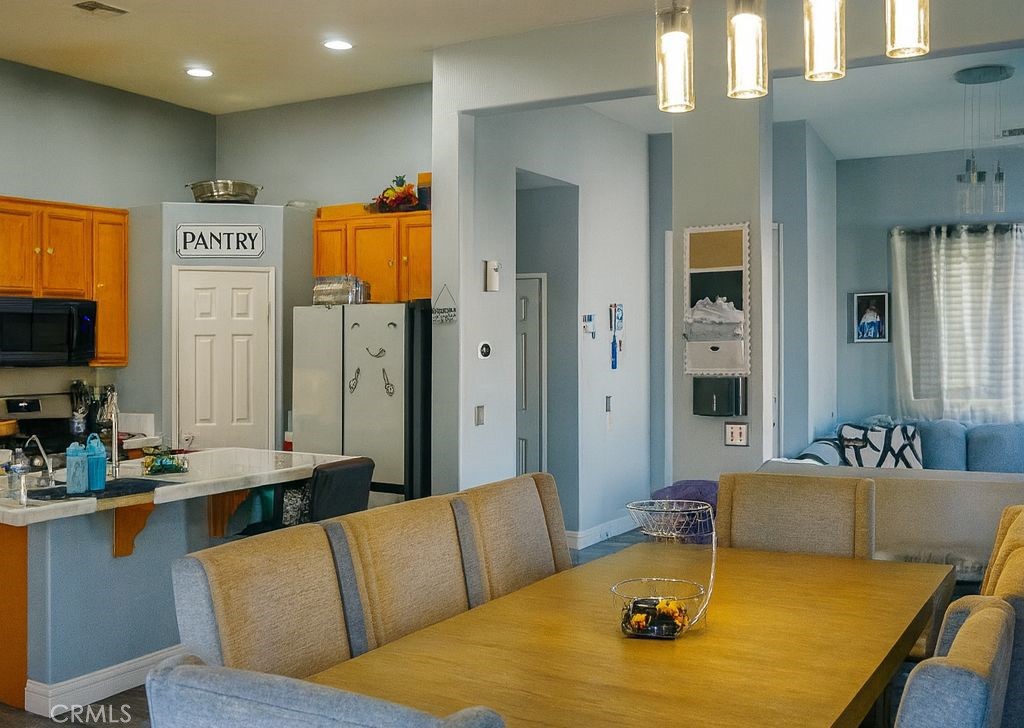 Ask about the $20K Grant available! There is a 2.9% FHA Assumable loan as an option. Lock in the rate we all wish we had still with low payment! Beautifully remodeled 5-bedroom, 3-bath single-story home in a quiet, family-friendly South Adelanto neighborhood. This spacious layout features a formal dining area, open living room with fireplace, and a modern kitchen with an island, granite countertops, custom backsplash, oversized pantry, and built-in beverage fridge. The primary suite includes a custom barn door entry, dual sinks, separate shower and tub, private toilet area, and walk-in closet. The 5th bedroom has its own private entrance, walk-in closet, and full bath, making it ideal for rental income, guests, or multigenerational living. The backyard offers a covered patio, concrete throughout, and mature fruit trees—perfect for entertaining. Additional highlights include a fully paid whole-house water filtration system, 2-car attached garage, and potential for ADU development (buyer to verify with city). Solar lease through SunRun at $168/month, installed 2 years ago with a 25-year term. A rare find offering flexibility, comfort, and long-term value