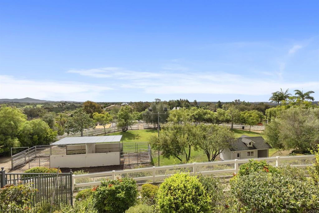 Set on nearly three acres in the rolling hills of Olivenhain, this custom single level estate blends timeless architecture with the relaxed beauty of coastal California living. Encompassing approximately 5,000 square feet, the residence offers six bedrooms and four and a half bathrooms across a light filled open concept floor plan. Expansive and inspiring views overlook the world class golf course and clubhouse of The Bridges to the south and capture distant ocean views to the west. Designed for effortless flow, the interiors feature wide plank wood floors, high ceilings, and a soothing palette that complements the natural surroundings. The great room centers on a classic brick fireplace and opens to a covered loggia framed by arched stonework, perfect for entertaining or quiet evening gatherings. The kitchen combines elegance and function with marble countertops, custom cabinetry, a walk in pantry, and a breakfast area overlooking the gardens. A formal dining room and dedicated office provide thoughtfully designed spaces for work and connection. The primary suite offers a private retreat with direct access to the patio, a freestanding tub, and dual vanities. Five additional bedrooms provide comfort and flexibility for guests or family. Outdoors, the home embraces the California lifestyle with a pool and spa, shaded dining terraces, raised vegetable gardens, and an outdoor kitchen designed for al fresco dining and year round enjoyment. The grounds extend across approximately 2.59 usable acres with manicured lawns, fruit trees, and fenced paddocks suitable for up to five horses under current Olivenhain guidelines. Set within minutes of top rated schools, scenic trails, and the beaches of Encinitas, 3401 Adams Run offers a rare blend of privacy, space, and sophistication in one of North County’s most desirable communities.