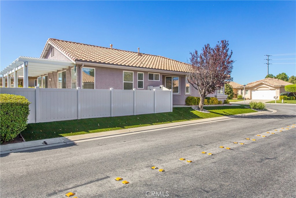 Stunning Columbine Model – Sun Lakes Country Club Nestled in the vibrant Sun Lakes Country Club community is this beautiful 2 bedroom, 2 bath, 1,471 sq. ft. home known as the “Columbine.” Perfectly situated on a corner lot with picturesque views of the San Jacinto and San Gorgonio Mountains, this popular floor plan offers comfort, charm, and style. As you enter, you’re greeted by a welcoming area that can serve as a den, office, or hobby room — a flexible space to fit your lifestyle. The spacious living room features abundant natural light and a cozy fireplace, creating a warm and inviting atmosphere. The open kitchen and dining area make entertaining a joy, offering plenty of room for gatherings with family and friends. The primary suite includes a walk-in closet, sliding door access to the patio, and a private bath with dual sinks. The guest bedroom and full bath are conveniently located nearby, providing comfort for visitors. Additional highlights include an indoor laundry room, an alumawood-covered patio for relaxing summer evenings, and an attached 2-car garage with a special RV electrical hookup to power your RV, and direct kitchen access and extra storage. Compare this value to homes in San Diego, Orange, or Los Angeles Counties — and you’ll see why Sun Lakes remains one of Southern California’s best-kept secrets. This gate-guarded 55+ community features 24-hour security and an impressive list of amenities: Two 18-hole golf courses (Championship & Executive) Driving range and two golf pro shops Three clubhouses, grand ballroom, and two restaurants Indoor & outdoor pools Tennis, pickleball, bocce ball Dozens of clubs, events, and activities year-round IF YOU’RE LUCKY ENOUGH TO LIVE IN SUN LAKES – YOU’RE LUCKY ENOUGH!