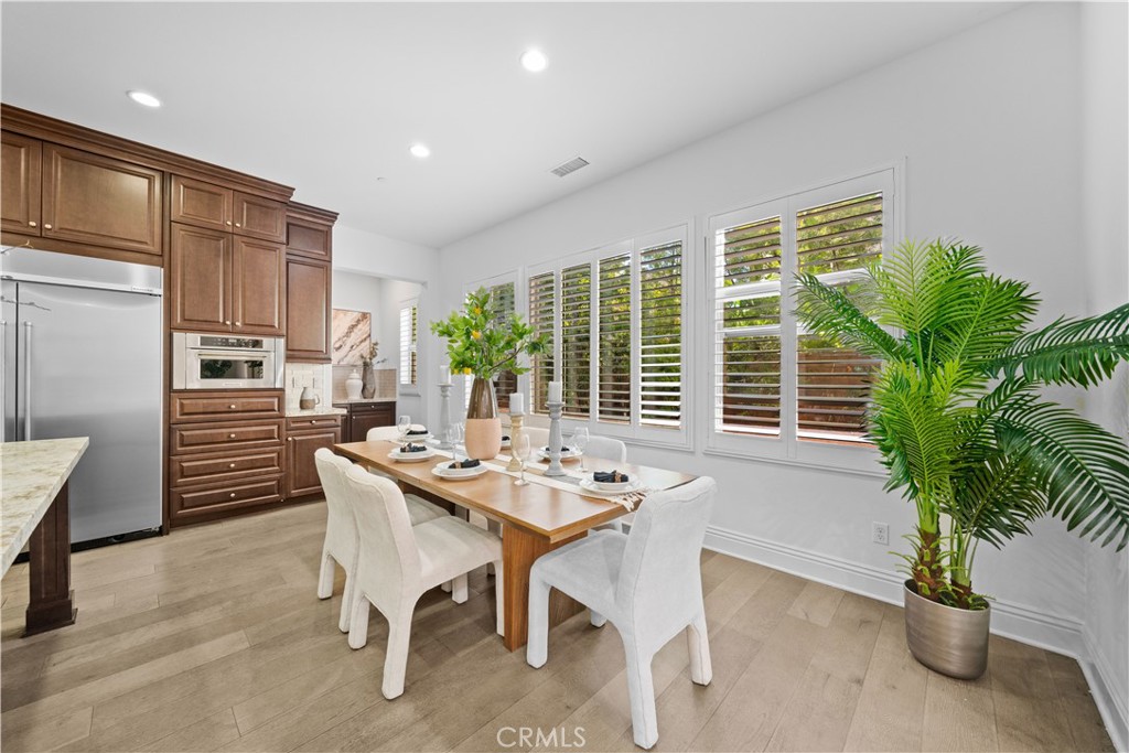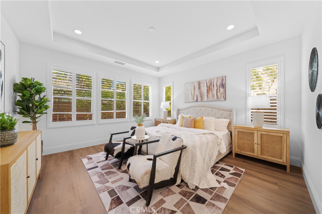 Located within the highly sought-after Greenwood at Tustin Legacy community, this stunning 6-bedroom, 5.5-bathroom home offers expansive living space in a lively, family-friendly neighborhood. 3 mins driving to Costco, 99 Ranch Market, and The District shopping center. 10 mins to UCI, and 20 mins to the beach. The flexible floorplan boasts two primary bedrooms, one of them is on the 1st floor, designed as an ideal 'In-Law' suite featuring its own dedicated living room. The downstairs primary bathroom provides a luxurious retreat with his-and-her vanities, a separate soaking tub, and a large steam glass shower. The second master bedroom is upstairs with an oversize balcony that brings you the perfect summer breeze. It has a fully remodeled bathroom, with a modern color scheme, dual sinks, a standalone soaking tub, and a glass shower. The interior is designed with warm, inviting tones, complemented by modern features and hard flooring throughout. Excellent recessed and natural lighting shines throughout the home, highlighting both its functionality and appearance. The windows are further enhanced with elegant custom shutters, providing excellent light control and privacy. The gourmet chef's kitchen is equipped with stainless steel appliances and features an expansive layout, perfect for preparing meals for a large family. From the main living area, panoramic sliding glass doors seamlessly connect to the spacious backyard, inviting effortless enjoyment of the coveted California indoor-outdoor lifestyle. Broker and broker's agents do not represent or guarantee accuracy of the square footage, bedroom / bathroom count, lot size, and/or any other information concerning the conditions or features of the property. Buyer/Tenant is advised to independently verify the accuracy of all information through personal inspection & with appropriate professionals to satisfy themselves.