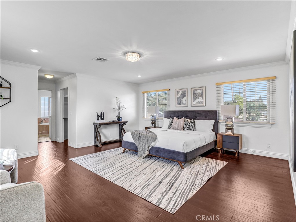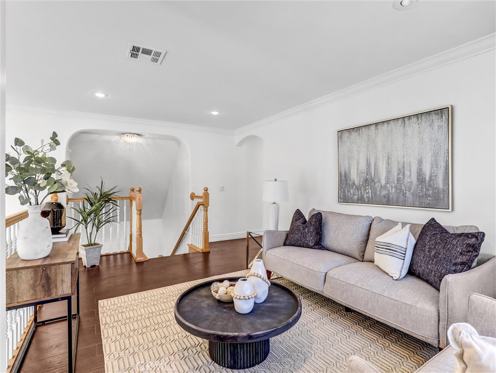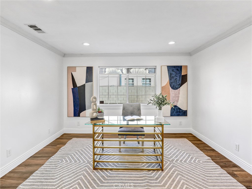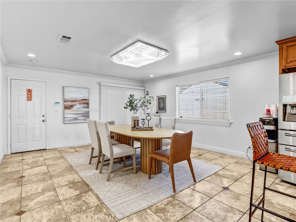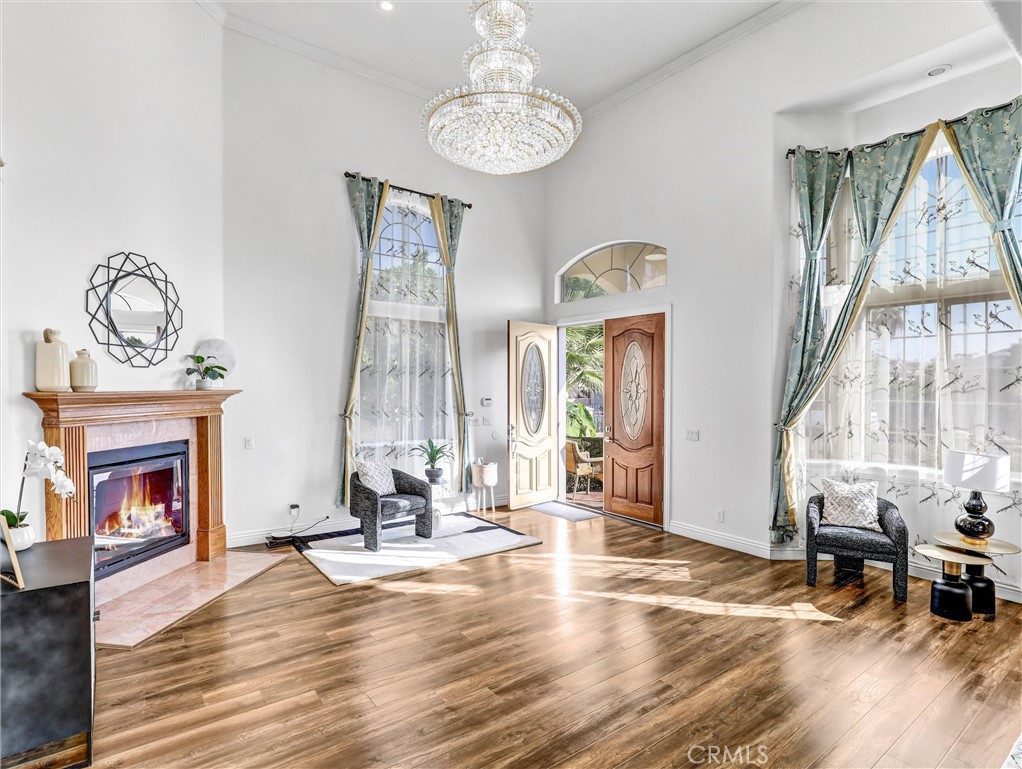 Built in 2013, this beautifully maintained detached PUD offers 4 bedrooms, 4 bathrooms and PAID OFF SOLAR PANELS, plus an office that can easily serve as a 5th bedroom. The modern kitchen features sleek cabinetry, generous counter space, and quality newer appliances. The bright, high-ceiling living room is highlighted by a striking custom 38-bulb LED chandelier with multiple color settings, creating an inviting atmosphere. On the first floor, you’ll find two spacious bedrooms, including a junior suite, along with a versatile office conveniently located next to a full hallway bath—ideal for guests or multi-generational living. Upstairs, a large loft provides a cozy relaxation area, accompanied by two additional suites, including the primary suite. Additional highlights include a 3-car garage, 4 private parking spaces, and dual tankless water heaters and A/C units and Gabrielino High School! This large PUD WITH NO HOA combining modern comfort, efficiency, and an unbeatable location is truly a rare find!