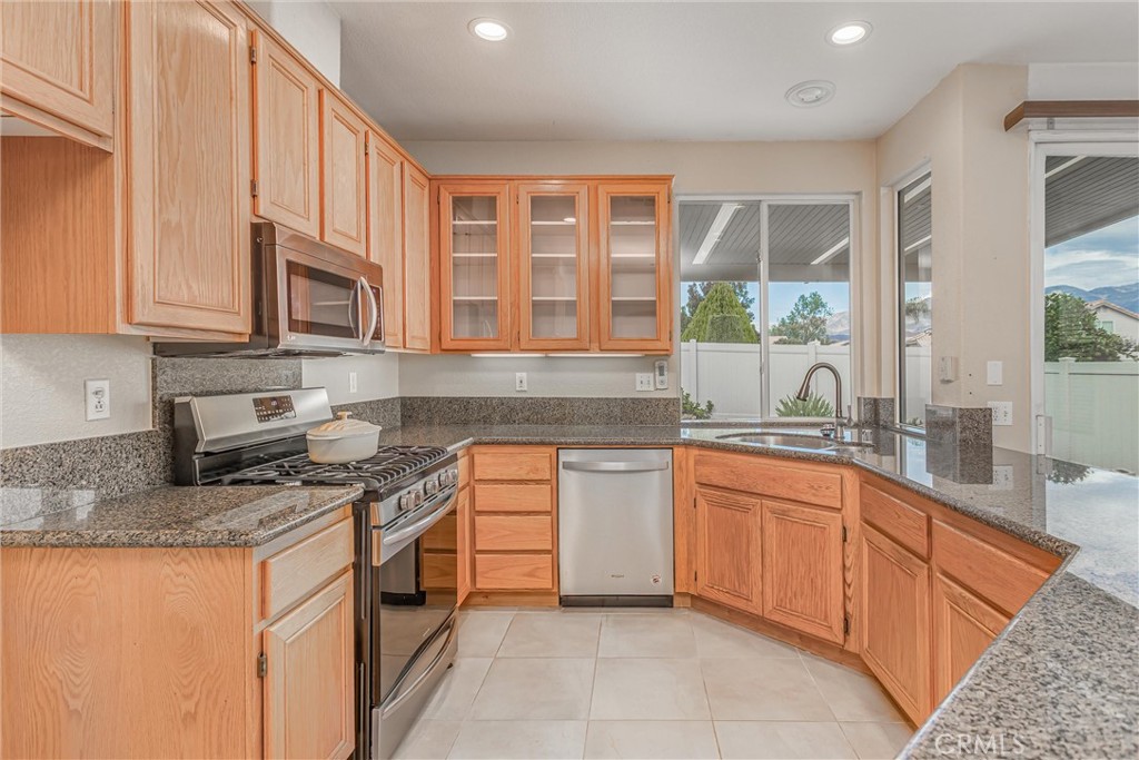 A lovely Jasmine is now for sale in the amazing community of Sun Lakes Country Club. This 1785 square foot home features 2 bedrooms, 2 bath, living room, dining room, kitchen, family room area, bonus room, and an indoor laundry room. As you enter this spacious home, you are immediately greeted by a living and dining room that is sure to become a popular gathering place. The bonus room can be used for an office, den, craft room or anything your heart desires. The open kitchen with ample work area, granite counter top, and splendid views of the San Gorgonio mountains are sure to make any cook happy as a clam. The kitchen overlooks the family room and eating area, making entertaining a breeze. The primary suite offers a walk-in closet, sliding door to the patio area and a private dressing/bath area. The guest bedroom is roomy and sure to comfort any guest for any length of time. An indoor laundry room with plenty of cabinet space is a huge plus and the walk-in pantry has many benefits for both convenience and home organization. The attached 2 car garage features ample space for storage and/or a golf cart. The front yard is almost maintenance fee with turf grass which is cost effective. The backyard showcases beautiful views, a couple of fruit trees and a durable Alumawood patio cover - perfect for relaxing or entertaining outdoors. Sun Lakes Country Club is one of the most affordable 55+ active adult communities in Southern California.
