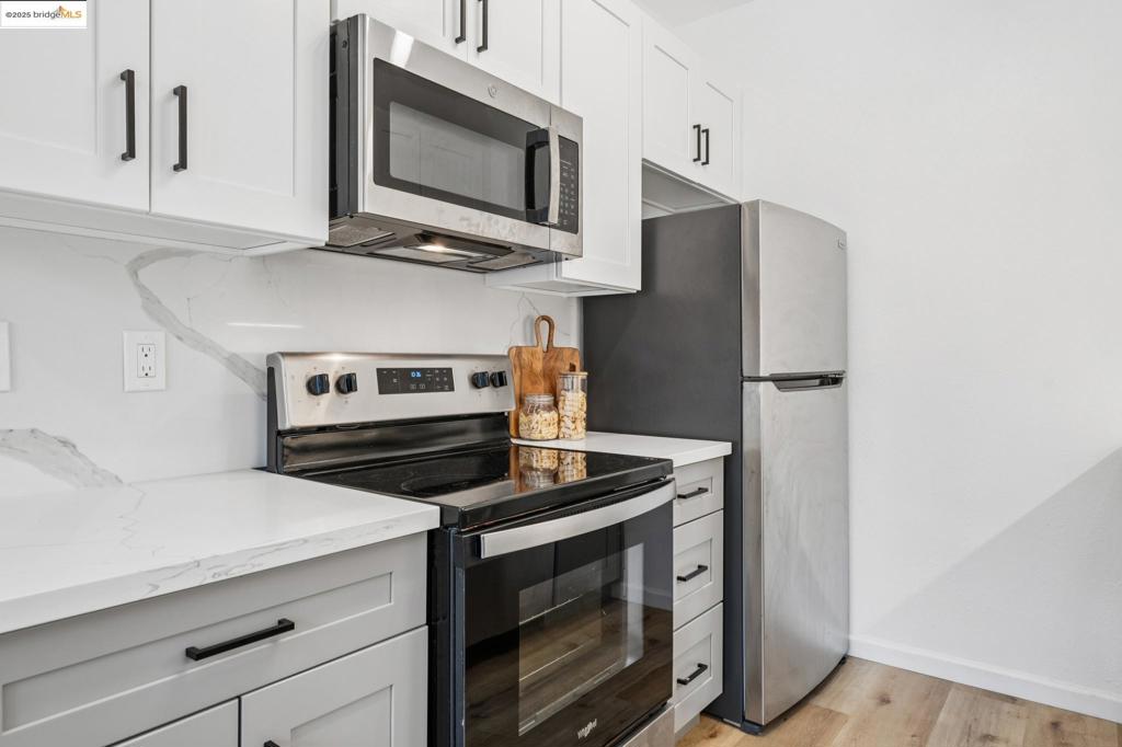 Experience serene coastal living in this beautifully updated ground-level 1-bedroom, 1-bath condo in the desirable Marina Bay community, with beautiful water views. This move-in-ready home features a modern kitchen with marble countertops, stylish light fixtures, and a spacious open layout that fills with natural light. Enjoy a cozy fireplace with a custom wood-looking wall design and a bathroom enhanced with elegant wood-style finishes around the tub. Step outside to your private patio, where tranquil water views create the perfect setting for morning coffee or evening relaxation. The entire interior was completely remodeled, including luxury waterproof vinyl plank flooring extended throughout, a brand-new kitchen, a new electrical system, and plumbing systems, for added comfort and reliability. The gated community offers resort-style amenities, including two heated pools, spas, a fitness center, clubhouse, tennis and pickleball courts, EV charging stations, and lush landscaped paths along the Bay Trail. Conveniently located near the Richmond Ferry, BART, and major freeways, this home combines comfort, style, and accessibility. The perfect blend of coastal and city living.