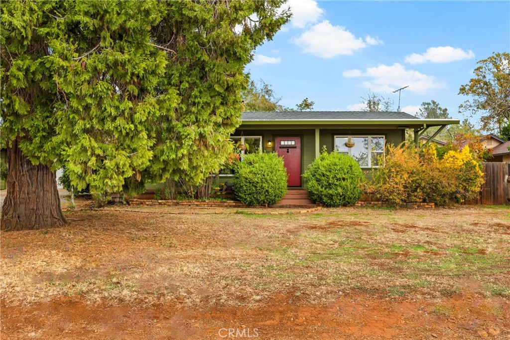 Welcome to this charming craftsman style home with a guest house situated on a large lot with mature landscaping! Offering original 1950’s charm throughout with the bonus of NEW siding, roof, gutters, new septic tank, and updated dual pane vinyl windows, this home is a rare find. The main house offers a cozy wood burning stove with tons of natural light, 2 bedrooms and a bathroom. The spacious kitchen features a farmhouse style sink, gas range, updated butcher block countertops, and a huge garden window overlooking the large backyard. A permitted guest house offers an additional bedroom with an attached bathroom, tankless water heater, and french doors that open onto the shared patio. Additional features include a fully fenced yard, 1 car garage with a workbench, window coverings throughout, ceiling fans in all bedrooms. Washer, dryer, and refrigerator are included in the sale.
