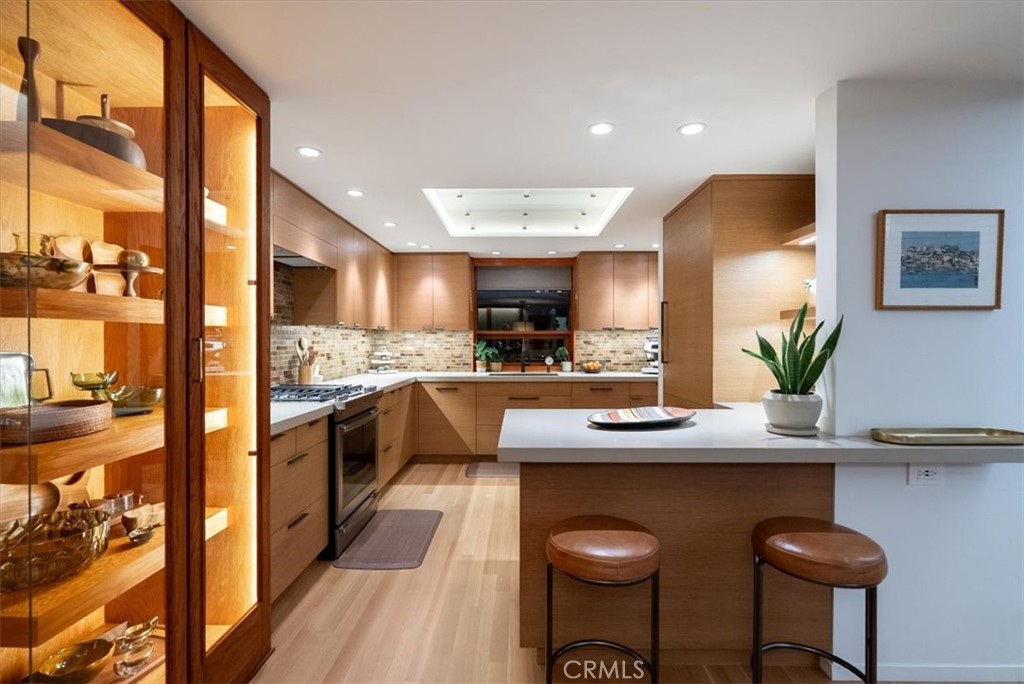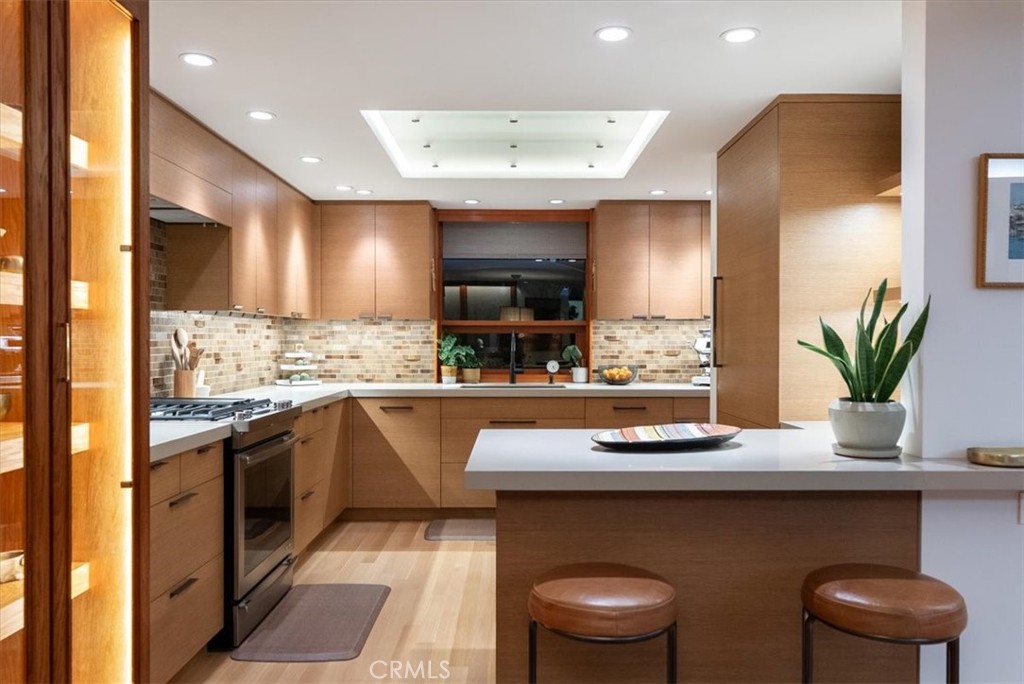 New Year repositioning presents your opportunity to experience this architecturally distinctive Mid-Century Revival with sweeping upper-level ocean views. Set in the coveted Sunset Palisades of Shell Beach, this residence offers an elevated yet relaxed coastal lifestyle defined by light, flow, and seamless indoor–outdoor living. Thoughtfully renovated over the past decade, the home honors its original design while enhancing every detail for modern comfort, durability, and everyday livability. Beyond dramatic 12-foot double entry doors, the 2,245 sq ft interior unfolds with calm intention. Rift-sawn white oak floors, clear-cut cedar and Douglas fir millwork, and custom grain-matched cabinetry create a warm, cohesive design language throughout. Original mitered glass windows frame the coastline and fill the main living spaces with natural light. The living and den areas balance form and function with bespoke TV lift cabinetry and walnut-veneered built-ins that discreetly integrate technology. The kitchen is equally considered, featuring white oak cabinetry, Bosch, JennAir, and Sub-Zero appliances, Wa-kei Waiko Japanese tile, Kiesebohmer storage systems, and a skylight topped with a custom 3form panel that provides soft ambient light. Upstairs, the primary suite is a private retreat with its own ocean-view balcony and panoramic vistas stretching south from Point Sal to Avila Bay. Caseta by Lutron lighting, a floating dual vanity, poured concrete countertop, and Hansgrohe fixtures define the spa-inspired ensuite. The second bedroom includes an ensuite bath, while a third bedroom—currently styled as an office—offers flexibility with custom cabinetry and generous storage. Outdoor living is thoughtfully layered across levels. The lower deck functions as an extension of the home, ideal for gathering, dining, and enjoying the ocean breeze. The backyard entertaining area features specialty concrete floating terraces, a fireplace with custom concrete hearth, integrated seating, a Lynx BBQ, a cantilevered bar, and rare 1960s Peill & Putzler pendant lighting beneath a trellis. Mature landscaping, including King palms and producing Hass avocado trees, enhances privacy and tranquility. A side yard includes a detached storage shed with potential for a future spa and outdoor shower. Moments from beaches, parks, and the charm of Shell Beach, 130 Hermosa Drive is designed for living—where architecture, light, and coastal perspective align.