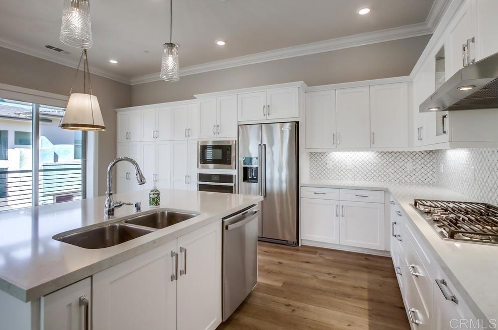 A 55+ community home located in the heart of Del Sur. This Avante Plan 4 with a private Elevator also features; 1787 sqft of living space, two bedrooms, two and a half baths, a ground floor office or possible bedroom with a two car garage. As an (end-of-building unit) enjoy numerous additional windows offering an abundance of natural light and views of treelined park across the street. Upgrades include: upgraded kitchen, Solar, Valley Oak flooring, wainscoting & crown molding throughout, designer backsplashes, custom doors, custom epoxy flooring and storage racks in the garage. and so much more. The Avante community amenities include a clubhouse, pool, jacuzzi, gym, pool table, lounge, barbecue kitchen and fire pits. Also, as a resident of Del Sur you have special access to eleven pools, fourteen parks and manicured hiking trails throughout the community. Considering everything this home has to offer, including the shopping and great restaurants within easy walking distance, this home is an absolute MUST SEE!