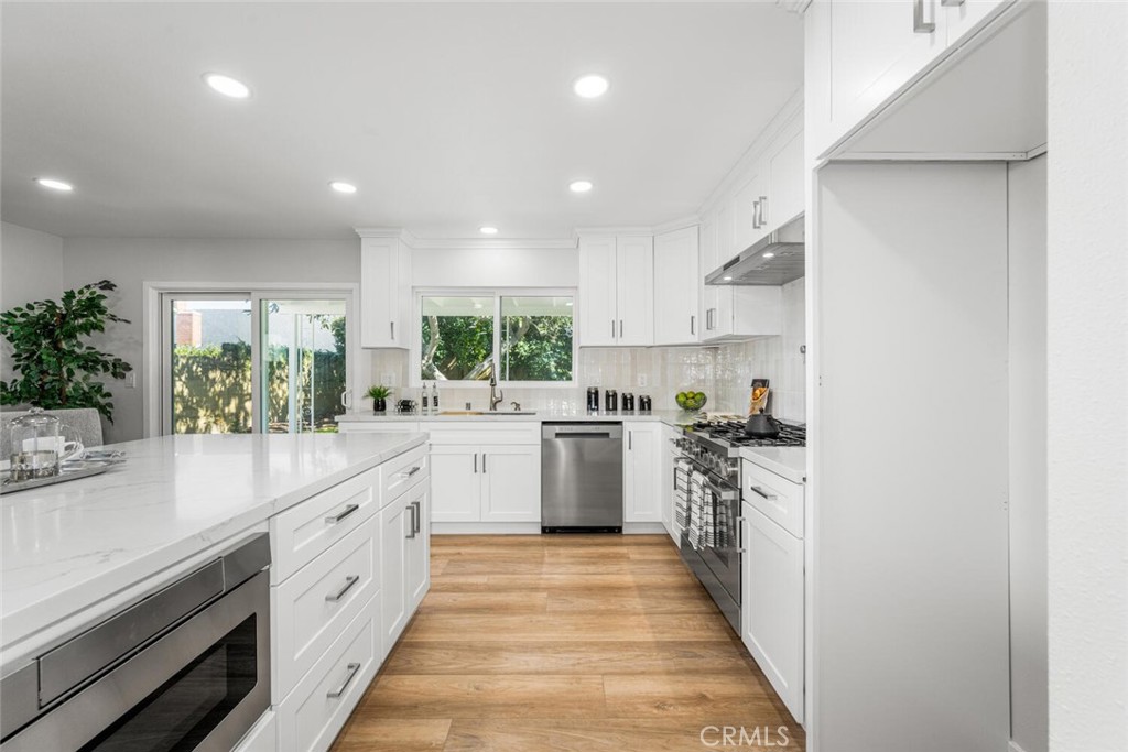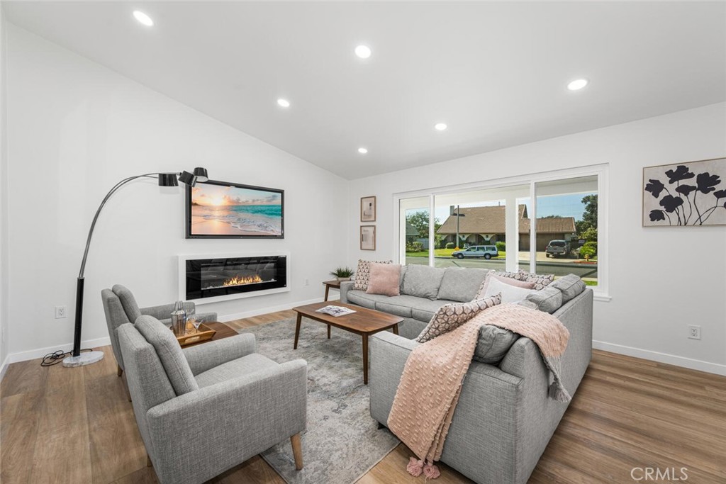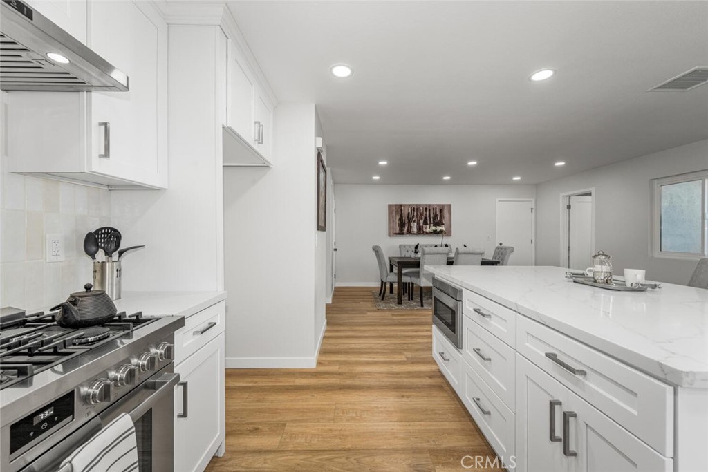 This beautifully updated home is in the highly desirable Suburbia Estates neighborhood of Los Alamitos. The stunning 4-bedroom 2.5 bath house has been completely renovated from top to bottom with all work completed by licensed contractors, with full City plans and permits. The interior showcases a modern aesthetic with a neutral color palette and high-end finishes. The gourmet kitchen features a 36-inch six burner Bosch range, pot filler, white cabinetry, and quartz countertops. The large center island has seating for five and comes with a built-in microwave, perfect for meal preparation and casual dining. New recessed LED lighting and dual-pane windows flood the space with natural light, creating a bright and airy atmosphere throughout. Throughout the home, you’ll find that all new luxury vinyl plank flooring unifies the space, while the home's open floor plan and thoughtful layout make it ideal for both everyday living and entertaining. Fresh interior and exterior paint, a new front double door, remodeled bathrooms and bedrooms, and a new electric fireplace adds warmth and style to the living area. The exterior is just as impressive, featuring refreshed landscaping, a covered patio, and a backyard adorned with a mature avocado tree and an abundance of citrus trees. The extended 2 car garage features a durable epoxy floor, and a new water heater already installed for your convenience. The home also boasts a newly upgraded 200-amp electrical panel (solar ready), a new heating and air conditioning system with all new ductwork and added attic insulation for improved energy efficiency. Safety and quality have been prioritized with asbestos and lead abatement completed by a licensed C-22 contractor, ensuring peace of mind for the new owners. Every system, surface, and finish has been thoughtfully upgraded, creating a truly move-in-ready home that delivers modern comfort, efficiency, and lasting value. Located in the award-winning Los Alamitos Unified School District, this home in Suburbia Estates offers an exceptional living experience—where style, space, and contemporary amenities come together in a highly sought-after area.