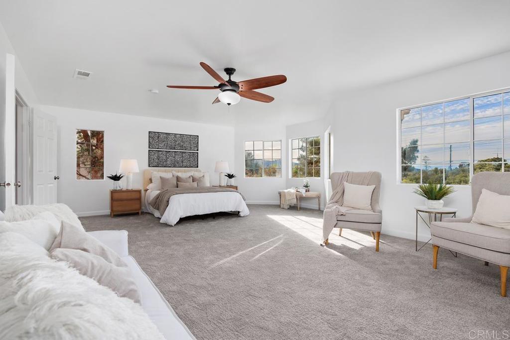 Major Price Adjustment!! Lowest priced per square foot 5 bedroom home in San Marcos zip code (92069). A Rare San Marcos Find: Big, Beautiful, and Truly Move-In Ready Tucked into an exceptionally quiet neighborhood just five minutes from both the 15 and 78, this stunning 3,522 sq. ft. home offers the space, privacy, and convenience buyers dream of—but almost never find. With 5 bedrooms, 4 full baths, no HOA, solar savings, and fresh upgrades throughout, this is the kind of property that doesn’t sit on the market for long. From the moment you walk in, it feels like new: brand-new interior paint, new carpet, new baseboards, stainless steel appliances, and refreshed landscaping around the oversized backyard—complete with a putting green. Every room feels generous and comfortable, designed for those who refuse to compromise on space. The main level features a full bedroom and bathroom (perfect for guests, in-laws, or a home office), a true walk-in pantry, a large laundry room, and a cook’s kitchen with a five-burner stove. Solar panels on a Power Purchase Agreement help keep electric bills low without the upfront installation cost. Upstairs, a spacious loft offers a second living area, game room, or media space. Each upstairs bedroom includes an extra-large walk-in closet—an uncommon luxury in any price range. The primary suite is enormous, with a spa-like ensuite featuring dual vanities, an oval soaking tub, separate shower, and a huge walk-in closet. Large windows bathe the home in natural light, and the upper-level bedrooms capture sweeping panoramic views. Outside, the home sits on a generous lot backing directly to a peaceful community park—no neighbors directly behind you—creating a rare sense of openness and privacy. All of this comes with quick access to shopping, top-rated schools, Cal State San Marcos, Palomar Hospital, and major freeways, while still feeling tucked away from noise and traffic.