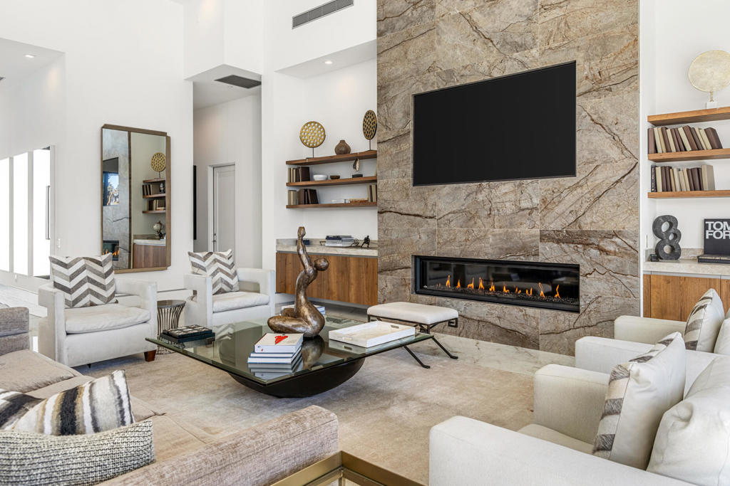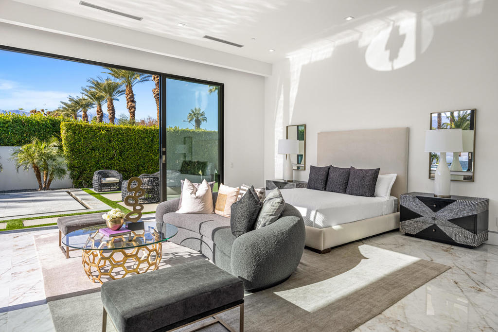 Welcome to Bravo 7, located in the heart of Tamarisk, in Rancho Mirage. This private enclave of seven curated luxury homes by architect James M. McEachern and Developer Bravo Development is now hitting the market for the first time. This luxury residence at Bravo 1 boasts an oversized pool with two tiled Baja shelves and a step-down bar area with a fire pit. Upon entering through the pivoting glass door, you will be greeted by an impressive interior featuring soaring ceilings, fold-away glass doors, imported polished marble from Spain, and sleek custom cabinetry imported from Germany. The bathrooms and kitchen are adorned with high-quality Hansgrohe fixtures. The spacious great room, complete with a linear fireplace, is perfect for hosting grand-scale gatherings and seamlessly connects to the kitchen, backyard, and pool area. The estate offers 5 ensuite bedrooms and 5.5 baths, equipped with Fleetwood doors and windows, Miele appliances, smart-home lighting and communication systems, and luxurious Italian cabinetry in the primary suite's walk-in closets. Other notable features include illuminated bath mirrors, solar power, and a 3-car garage with epoxy flooring. This prestigious residential collection is conveniently located near The Ritz-Carlton Resort & Spa, Sunnylands, Palm Springs International Airport, luxury shopping, and fine dining. It presents an unparalleled opportunity to live a grand lifestyle that many can only dream