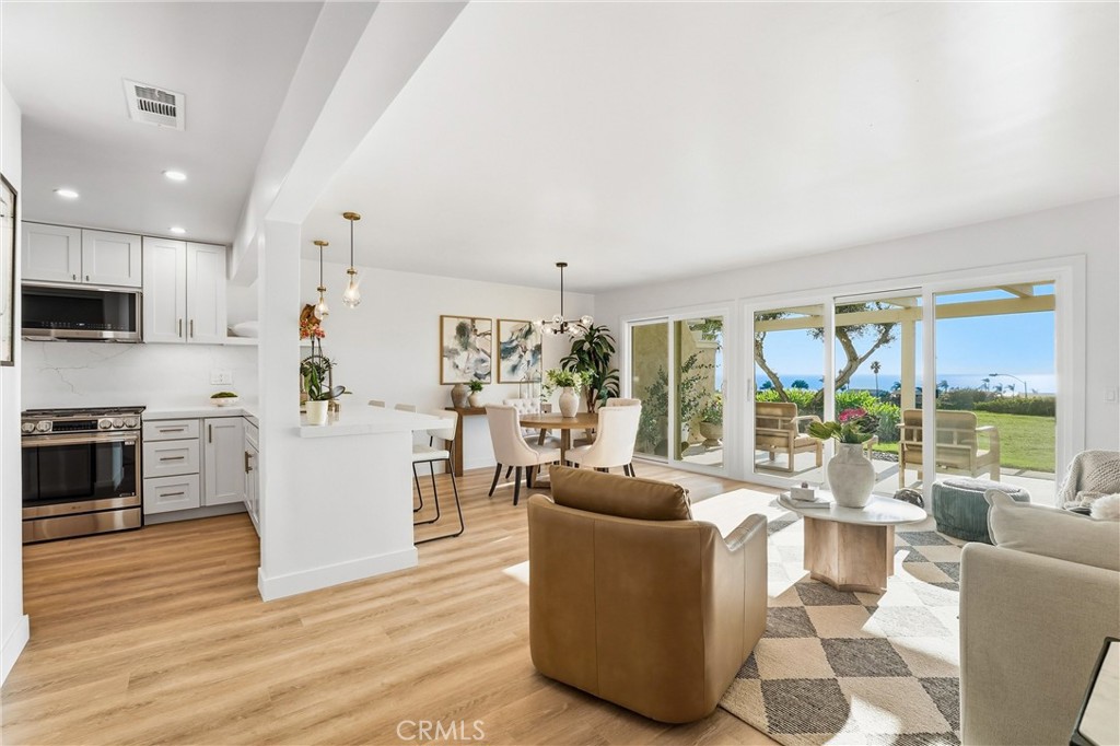 Now offering a limited-time 2-1 rate buydown opportunity — see supplement for details. One of the most compelling remodeled ocean-view opportunities in Presidential Heights II. Uninterrupted sit-down panoramic ocean views define this fully remodeled two-bedroom attached single-family home in one of San Clemente’s most desirable coastal communities. From the gated courtyard entry to the open-concept living space, the home was thoughtfully redesigned to maximize natural light, flow, and the expansive horizon views that anchor the property. The ocean becomes a true extension of the living area, with dramatic sunsets visible from both the main living space and the primary bedroom. The chef’s kitchen is exceptionally spacious and features soft-close custom cabinetry, floating shelves, new LG appliances, a Kraus workstation sink with champagne touchless faucet, dimmable lighting, and generous storage. Both bathrooms have been fully remodeled with contemporary finishes, anti-fog mirrors, and premium Kohler fixtures. High-end upgrades throughout include luxury vinyl plank flooring, smooth finished walls, upgraded doors and hardware, designer lighting, ceiling fans, and a modern cable stair system that enhances the open feel. For qualified buyers, seller is offering a temporary 2-1 rate buydown incentive (subject to terms and deadline). This strategic financing opportunity may significantly reduce initial monthly payments — see attached supplement for full details. The community pool and spa are just steps away, and the HOA includes water and fire insurance. Minutes from downtown San Clemente, beaches, restaurants, boutiques, and world-class surf at Trestles, this turnkey property offers remodeled coastal living with panoramic ocean views — now paired with a rare structured financing incentive.