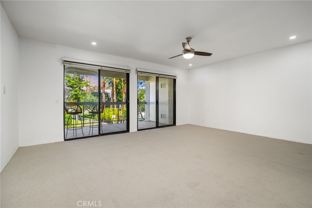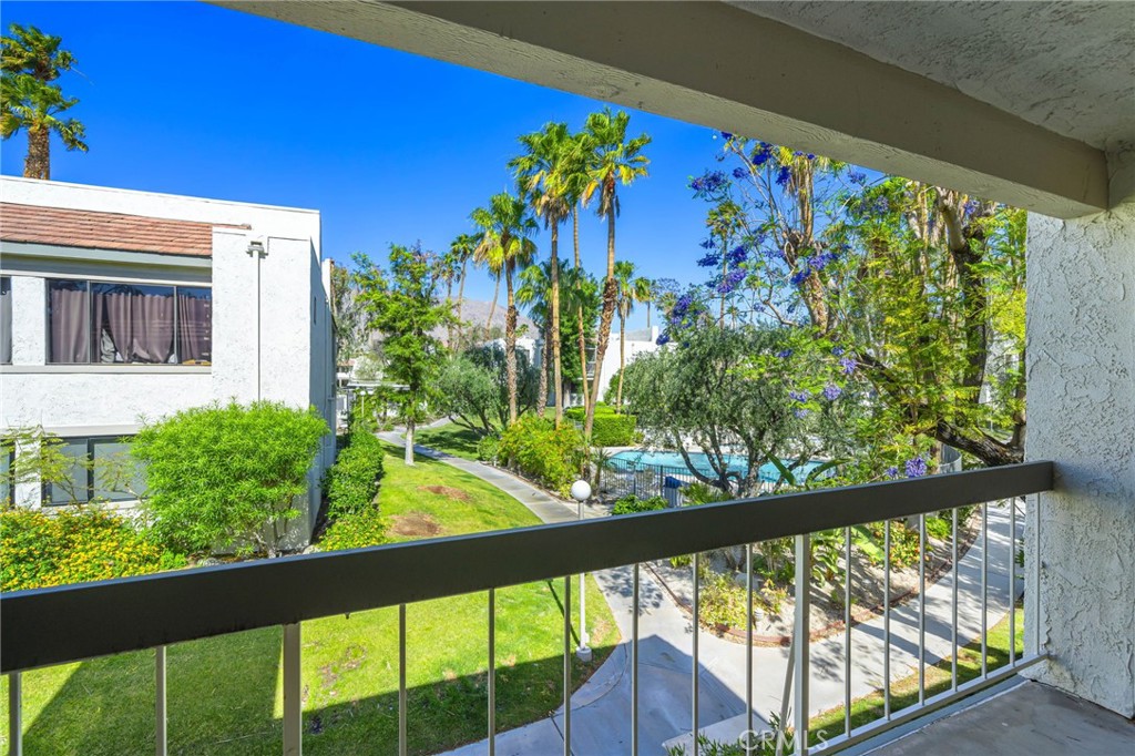 BOM APPROVED Short Sale OVER $100,000 lower than any other property currently listed on Via Miraleste!! at the gates of Riviera Gardens. A lush and well kept community, that is known for its mature landscaping, multiple pools, and spas, with a great location that keeps you close to downtown Palm Springs, without being in the thick of it. Inside, the floor plan is spacious, efficient, and inviting-perfect as a weekend escape, full time home, or rental friendly investment. The kitchen and living area are flooded with soft, natural light, and tremendous mountain views from nearly anywhere you sit. A south facing patio creates additional living space with built in motorized roll down shades, and mountain views. Bright, clean, and move- in ready, this home is being sold turnkey furnished as well. With laundry in unit, assigned parking, and gated secure community access, the essentials are covered, its the kind of place that lets you live simply, quietly, and just a few minutes from all the fun.