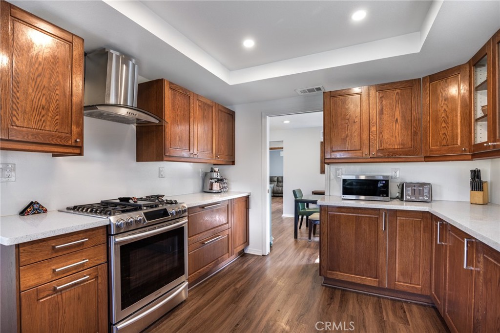 Welcome to 5303 Mark Court, Agoura Hills, CA 91301 Discover this beautifully updated and spacious townhome tucked away on a quiet cul-de-sac in the heart of Agoura Hills in the highly desirable Oakview Gardens community. With 3 bedrooms, 2.5 bathrooms, a cozy den with fireplace, and approximately 2,017 sq ft of living space on a 3,554 sq ft lot, this home blends modern upgrades with everyday comfort. Step inside to warm wood-like laminate floors that flow throughout the main level, creating a welcoming and cohesive atmosphere. The first floor features a generous living room, a dining area perfect for entertaining, and a versatile enclosed den ideal for guests, a 4th bedroom, a home office, or a media room. The semi open-concept kitchen is the heart of the home, showcasing quartz countertops, a modern refrigerator, and abundant natural light—perfect for cooking and gathering. Upstairs, enjoy beautiful hardwood floors and a tranquil primary suite with a fully remodeled bathroom featuring designer finishes, dual sinks, and a walk-in closet. There’s even a cozy nook for an exercise bike or reading chair overlooking the serene private backyard. Two additional bedrooms offer ample space for guests or family. The backyard and private side space have been beautifully landscaped with artificial grass, outdoor lighting and a 6 foot fence and gate which creates privacy in this large entertaining space. Perfect for soaking up the California sunshine. Additional highlights include: Leased solar panels for energy efficiency Access to a community pool and spa Located in the much sought out Las Virgenes Unified School District Conveniently located to freeway access Close to parks, hiking trails, shopping, dining, and entertainment With its perfect blend of style, comfort, and location, 5303 Mark Court is more than a home—it’s a lifestyle