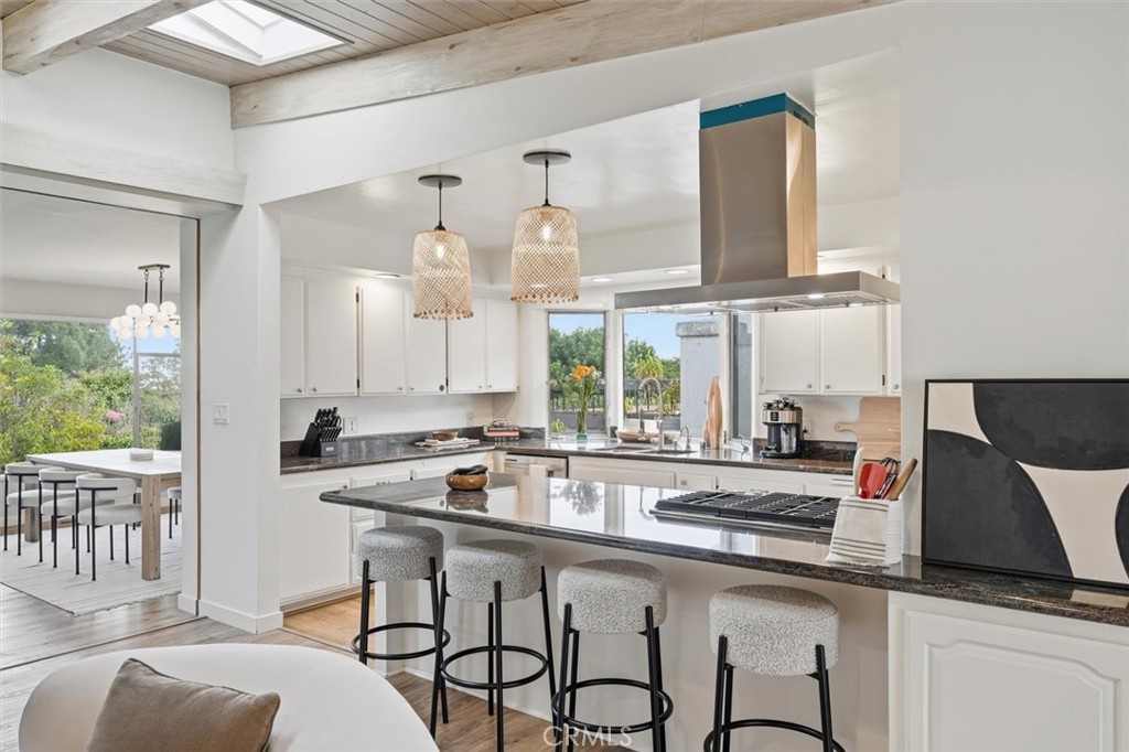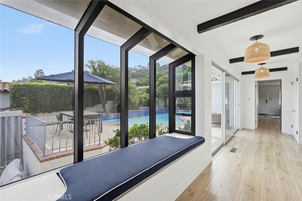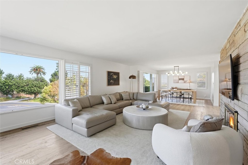 Perched at the corner of Via Conejo and Via del Monte, this timeless single-level residence captures the essence of Palos Verdes living — a place where natural textures, warm light, and enduring design come together in one of the most desirable neighborhoods of the South Bay. Inside, you’re greeted by beamed ceilings and stone accents that set a grounded, earthy tone. Sunlight pours across an open floor plan that connects the living and family rooms, both anchored by fireplaces that invite gathering. The kitchen opens to the heart of the home, flowing easily to dining and casual living spaces, while four bedrooms on the main level provide comfort and flexibility for family, guests, or a home office. The primary suite is a true retreat, offering a spacious bath with dual sinks, a soaking tub, and serene views. Outdoors, a private backyard with a pool and spa creates a sanctuary of its own — perfect for quiet mornings or afternoons spent entertaining under the Palos Verdes skies. Mature landscaping softens the edges of the home and enhances its sense of privacy, while city lights and peek-a-boo ocean views remind you just how special this hillside location really is. Via del Monte is more than a street — it’s one of the most coveted addresses in Palos Verdes Estates, placing you moments from Malaga Cove Plaza, the beach, and scenic trails, all while feeling worlds away.