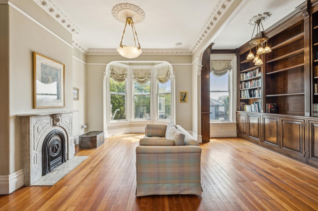 Welcome to 2070 Bush Street, a beautifully preserved Italianate Victorian capturing the timeless elegance of San Francisco’s architectural heritage. Soaring 12-foot ceilings, original hardwood floors, and three fireplaces, including beautifully preserved marble originals, showcasing the home’s craftsmanship and charm. A grand entry hall leads to the dining room, powder bath, and a chef’s kitchen with a 6-burner range, stainless-steel appliances, and French doors opening to a tranquil garden. Upstairs, the primary suite includes a walk-in closet and spa-like bath with double vanity, soaking tub, separate shower, and private deck overlooking the lush garden. The landscaped yard offers a stone patio and lawn, while the attached two-car garage provides coveted parking and storage. Near Fillmore Street, Japantown, Lafayette and Alta Plaza Parks, with a 99 Walk Score that makes it truly a Walker’s Paradise. View original unaltered images at: https://ggsir.link/original-images