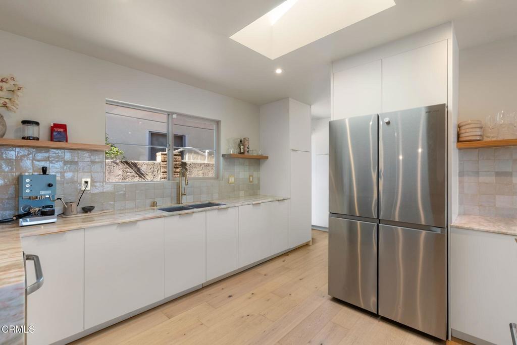 6919 La Presa is the kind of dream home that rarely becomes available. Set in a peaceful pocket of San Gabriel bordering San Marino, here you'll enjoy not just a gorgeous neighborhood but also San Marino school zoning. What's more, the current owners completed a total renovation in 2023. After taking the house down to the studs, they transformed 6919 La Presa into an effortlessly elegant modern sanctuary that feels luxurious, warm, and welcoming all at once. Engineered white oak floors and abundant natural light enliven the open-concept living room, dining area, and kitchen-the perfect environment for fostering a deep sense of connection with those you love most. Smart home features, like an integrated sound system, allow you to set the perfect mood with ease, whether relaxing or entertaining. The stunning kitchen showcases a quartz waterfall island and is outfitted with ample storage, stainless appliances, and a built-in wine fridge. Seamlessly blending functionality and contemporary style, you'll treasure this natural gathering place where cooking never feels like a chore. The nearby family room invites movie marathons and game day watch parties, and can easily be converted into a bedroom if desired. When it's time to unwind, three relaxing bedrooms provide everyone with their own retreat. The generously sized primary suite includes a walk-in closet and soothing rain shower. The second bedroom also includes a skylit ensuite while the third accesses a hallway bathroom. In the backyard, a private oasis is shaded beneath a large pergola, where Spanish terracotta tile and a soothing fountain create a serene backdrop for entertaining and al fresco dinners. With turnkey convenience, access to award-winning schools, and beautiful aesthetics both inside and out, 6919 La Presa Drive presents a rare opportunity that is not to be missed!