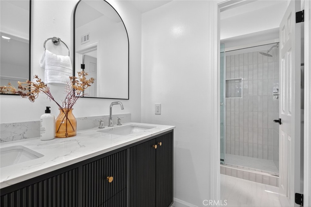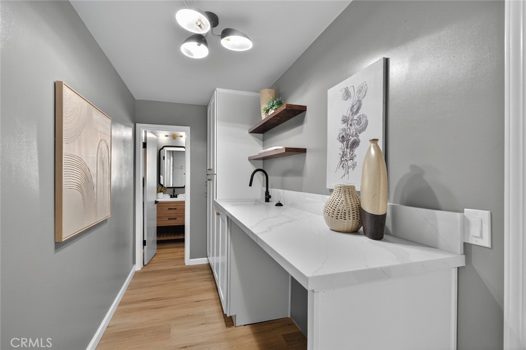 Nestled on a sprawling 15,000+ sq ft lot with breathtaking views of Mount San Antonio, this beautifully designed ranch offers indoor-outdoor living at its finest. The expansive yard features a sparkling pool, a court for recreation, alley access with a double-wide gate for possible RV parking, and plenty of room for entertaining. Inside, earth-toned finishes and warm tans create a nature-inspired palette throughout. The oversized kitchen is a chef’s delight with white oak shaker cabinets, elegant quartz countertops with subtle color veining, and a perfectly sized island ideal for gathering. New LVP flooring and recessed lighting flow through the home, enhancing brightness and a modern feel. Four spacious bedrooms are thoughtfully placed off the main living areas for added privacy. The primary suite includes a dual-sink vanity and a walk-in shower. Practical conveniences include an interior laundry room. A rare combination of generous outdoor space, thoughtful design, and panoramic mountain views — perfect for families, entertainers, and anyone seeking comfortable, single-level living in North Upland.