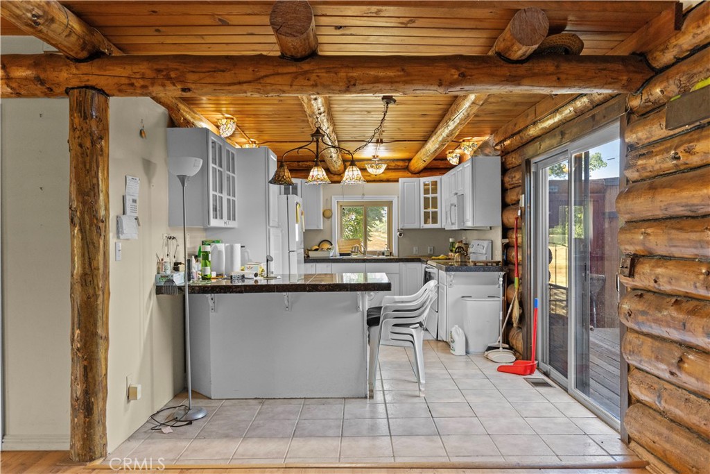 Nestled on peaceful Hilltop Perched on 2.78 private acres in the beautiful, gated community of Bear Valley Springs, this beautiful log cabin offers the perfect blend of mountain charm, convenience, and seclusion. Just minutes from the valley floor, it’s surrounded by serene natural beauty and sweeping mountain views. Step inside to a warm and inviting living room showcasing exquisite log craftsmanship and a cozy fireplace—perfect for relaxing evenings. Begin your mornings with stunning sunrises from the front porch and unwind at sunset on the back deck while taking in the panoramic mountain scenery and abundant wildlife. A bright sunroom adds versatility—ideal for enjoying your coffee, setting up a home office, art studio, or reading nook. Outside, a spacious 35' x 57' shop with a large roll-up door provides endless possibilities for storage, hobbies, or a workshop. Experience true mountain living—schedule your private showing today!
