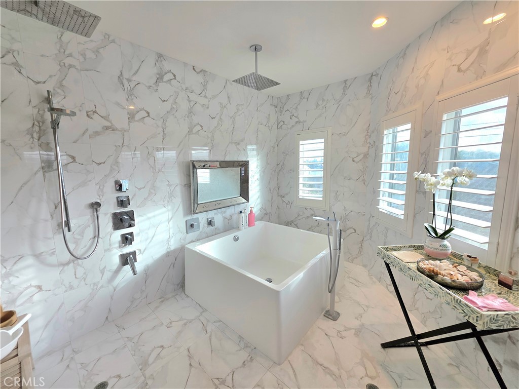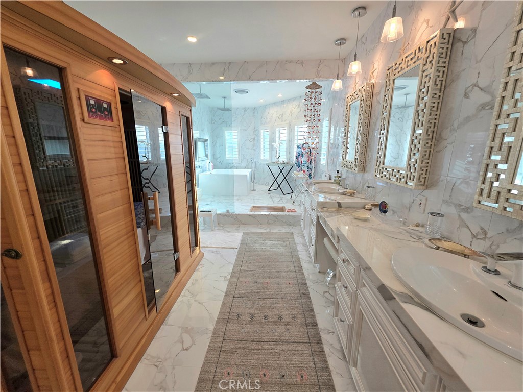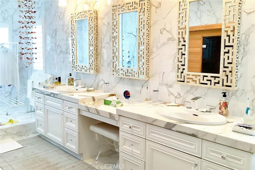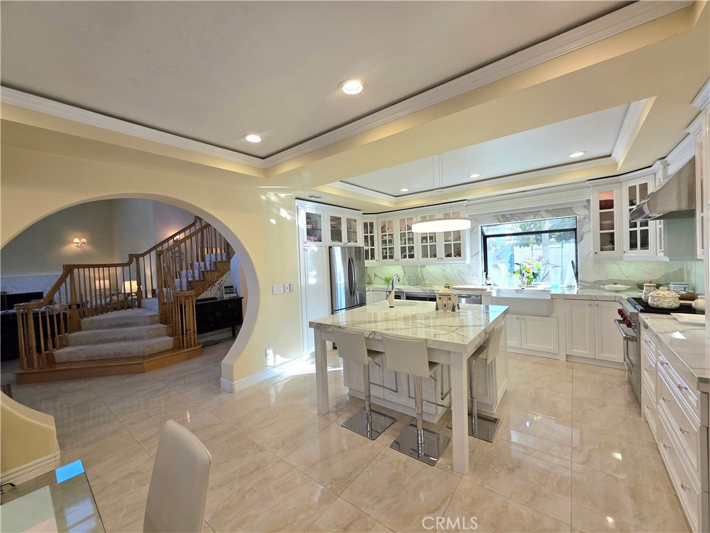 Stunning 5-Bedroom Estate with Garden Oasis and Dual Garages. One of the top world-renowned architects designed this custom home for a Life of luxury. Welcome to this extraordinary 5-bedroom, 4-bath home that exudes elegance and comfort from the moment you enter. The grand foyer boasts 21-foot-high ceilings and a sweeping staircase adorned with an elegant chandelier, opening into a spacious living room featuring a marble fireplace. There is an abundance of natural light from the extra-tall custom dual-pane windows and beautiful bay windows in all the rooms, complemented by plantation shutters and a view of the garden. Step outside to a lush garden paradise with over 50 fruit and flower trees, including lemons, oranges, grapefruit, peaches, persimmons, guava, as well as a vegetable and herb garden—a true farm-to-table experience right in your backyard. Enjoy the best quality foods grown in a beautiful garden of flowers and fruit trees. Fresh Herbs and vegetables to live a healthier longer life. The gourmet chef kitchen has been fully remodeled with one of the most expensive marble from Italy. All appliances are included: a high-end Wolf range with a 5-burner stove, stainless hood, refrigerator, dishwasher, washer, and dryer—all included. There's exquisite, expensive Italian marble, including White Statuario, in the kitchen and bathrooms, as well as on countertops, walls, backsplashes, and bathroom floors. There are 2 bedrooms and 2 bathrooms downstairs, and 2 bedrooms and 2 bathrooms upstairs, this home offers the perfect blend of functionality and privacy. Each spa-like bathroom is designed, like a 5-star hotel, with walk-in showers featuring multi-water jets, and a jacuzzi tub and bath with exquisite marble vanities. The sauna even features a private sauna for the ultimate relaxation. The 5th bedroom is a detached 2-car garage in the backyard, currently used as a mother-in-law's quarter with its own entrance, which could be converted to an ADU. The property is fully gated, offering privacy and ample parking with a 2-car garage that faces the side rather than the street for extra privacy. There are 5 cars that could fit in front of the driveway, 2 cars fit behind the automatic iron gate. There is a second detached garage that could be turned into 2 ADUs, potentially for additional income and use as an Airbnb. This home combines luxury living, practicality, and the serenity of nature—all in one remarkable package.