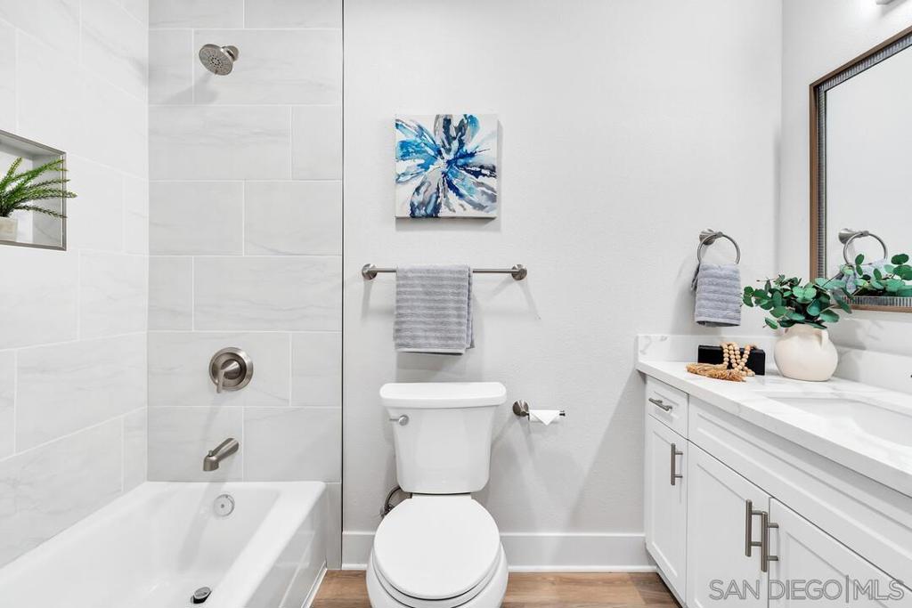 Welcome to turnkey condo in the vibrant La Jolla Village! This stylish, turnkey junior-1 bedroom condo is move-in ready and offers a fresh, contemporary feel with brand new upgrades. Step inside to find sleek vinyl plank flooring that complements the open, versatile layout. The newly renovated kitchen is a highlight, designed with modern finishes along with dual-pane windows, custom paint, remodeled bathroom and more. Situated just minutes from La Jolla’s beaches and the bustling UCSD campus, this location provides easy access to a variety of shopping and dining options.