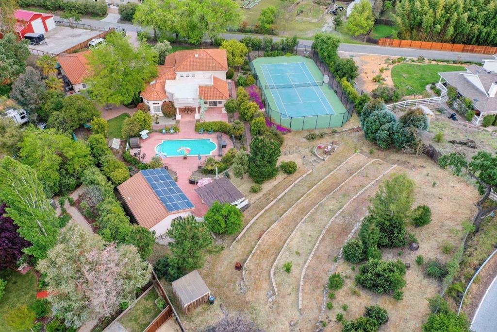 Come experience this stunning 6 bedroom, 5 bath estate set on 1.5 acres with potential for SB9 lot subdivision and two completely renovated ADUs. The main home features an open concept layout with soaring ceilings, abundant natural light, and a chefs kitchen that flows seamlessly into the living room, perfect for entertaining. The downstairs primary suite offers a private patio, walk in closet, soaking tub, and walk in shower. Step outside to an entertainers paradise with a pool, sauna, outdoor kitchen, fireplace, TV area, and tennis court surrounded by lush landscaping. ADU 1 is a remodeled studio with a full kitchen and bath, ideal for guests or events. ADU 2 offers two flexible rooms perfect for a gym, studio, or recreational space along with a 3 car garage. This property truly combines luxury, versatility, and future development potential. Dont miss this one of a kind opportunity!