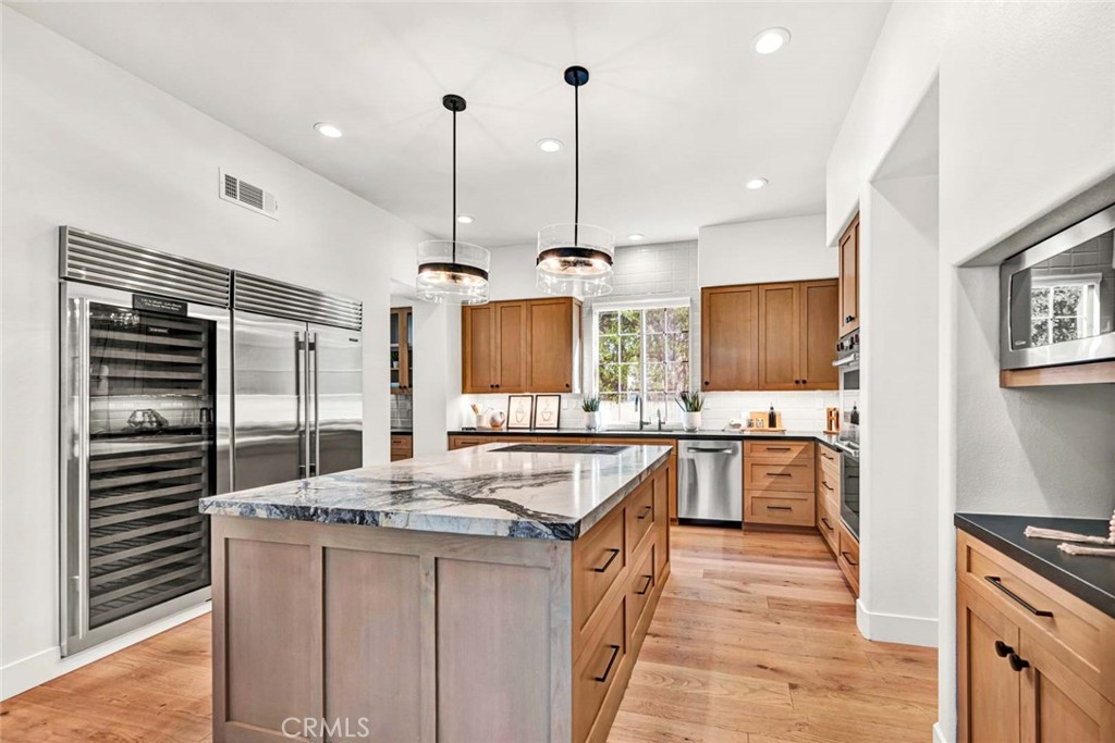 Welcome to 2508 Platt Place, a Custom Estate Situated on a Private Cul-de-Sac within the Gated Emerson Community. This Immaculate Tustin Ranch Home Showcases Five Bedrooms, Five and a Half Bathrooms (One Bedroom with Full Bathroom Located on the Main Floor), Bonus Room/Gym, New Wood Floors, Newer Carpet, New Window Shades, New Stairs & Railing, and Newer Garage Doors. Additional Owner Upgrades Include New Interior Paint Throughout the Upstairs Bedrooms and Recently Remodeled Downstairs Bathrooms. The Formal Living Room is Currently Used as a Wine Room, with Two Built-In Wine Fridges, and Sits Across from the Formal Dining Room. The Newly Remodeled Gourmet Kitchen Enjoys High-End Marble Counters, Soft-Close Custom Cabinetry with Pull-Out Drawers, Large Island with Cooktop, Wolf Stainless Steel Appliances, Built-In Fridge with Wine Fridge, Dual Ovens, Walk-In Pantry, and a Breakfast Nook Overlooking the Backyard. The Kitchen Opens to the Cozy Family Room with a Newly Remodeled Shiplap Fireplace, Built-In Bench Seating, and Backyard Access. The Spacious Master Suite Enjoys a Cozy Reading Nook and Access to a Private Balcony. The Master Bathroom Enjoys Dual Vanities, Make-Up Vanity, Walk-In Shower, Separate Jacuzzi Tub, and His/Hers Walk-In Closets with Custom Organizers. The Bonus Room Sits on the Opposite Side of the House, Currently Used as a Gym, Complete with Custom Brick Walls, Mirrors, and Balcony Access. The Backyard Showcases a PebbleTec Pool/Spa With Waterfall and Water Slide, Built-In BBQ Area, Built-In Stone Fireplace, Large Patio, Lush Landscaping, and Full Pool Bathroom. The Porte Cochere Leads to a Two Car Garage with Direct Access, Built-In Storage, and Separate Third Car Garage. Well-Designed Second Floor Laundry Room with Built-In Cabinets and Sink. Award Winning Tustin Unified Schools: Peters Canyon Elementary, Pioneer Middle, and Beckman High. Easy Access to the Toll Roads, 5 Freeway, Peters Canyon/Irvine Regional Parks, Tustin Ranch Golf Course, and Numerous Hiking & Biking Trails. 2508 Platt Place is a Must See!