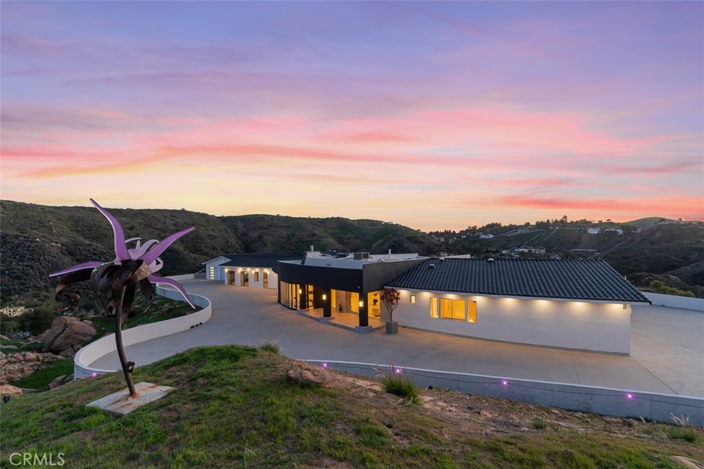 Discover the pinnacle of luxury living in this 2020-built, single-story modern estate, situated on over 31 private acres in the prestigious guard-gated community of Bell Canyon. Accessed via a triple-gated entry and a quarter-mile private driveway, this architectural masterpiece offers unobstructed 360-degree mountain vistas, ensuring both serenity and seclusion. As one of the most coveted properties in Bell Canyon, this estate boasts 5 spacious bedrooms and 5.5 opulent bathrooms across 6,751 square feet of meticulously designed living space. Constructed with steel framing, copper plumbing, and premium insulation, the home exemplifies quality and durability. Inside, wide plank oak flooring and Italian 48x48 Imola tiles complement soaring ceilings and solid core doors adorned with EMTEK chrome hardware. The state-of-the-art chef's kitchen features a massive center island, mother-of-pearl backsplash, Thermador appliances, and a 16-foot buffet—perfect for entertaining. Every room is bathed in natural light, offering breathtaking mountain views. This property captures the perfect balance of privacy, grandeur and tranquility. Additional amenities include a media/ballroom, game room, and an entertainer's wet bar. The grand primary suite offers seamless indoor/outdoor living, an all-stone spa-like bath, and a 370-square-foot walk-in closet. The estate's expansive grounds feature large flat areas ideal for equestrian pursuits or recreational activities. Bell Canyon's Class-A equestrian facility accommodates over 75 horses and is open to both residents and non-residents. Community amenities include parks, hiking trails, pickleball and tennis courts, playgrounds, a residents' gym, and organized events for all ages.The large backyard offers a fully equipped barbecue center, fireplace with patio seating, room for your own farm or ADU or extra car garage, plus loads of space for year-round relaxation or hosting family gatherings, all framed by peaceful views of the surrounding hills & mountains. This elegant home is also served by the award-winning Las Virgenes School District, which provides convenient bus service for Bell Canyon residents.This home has its own fire hydrant connected to the city in case of emergencies, Price reduced by $499,000 to account for the home being offered without a swimming pool. For buyers who would like to add one, full engineering plans are already completed and available. This home is also available for rent @$28,000