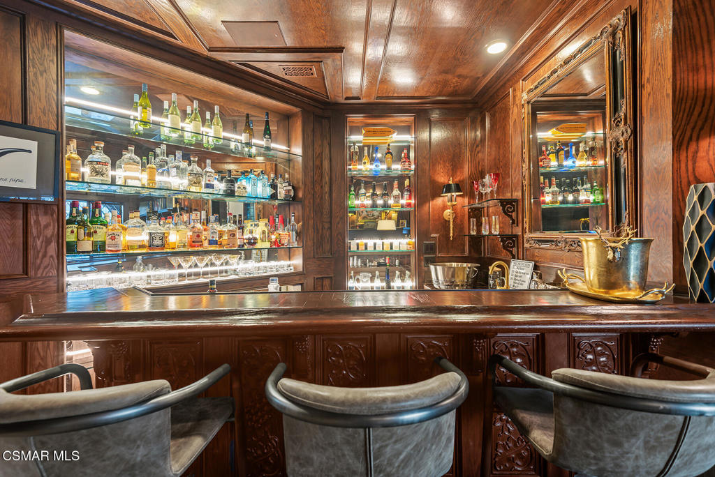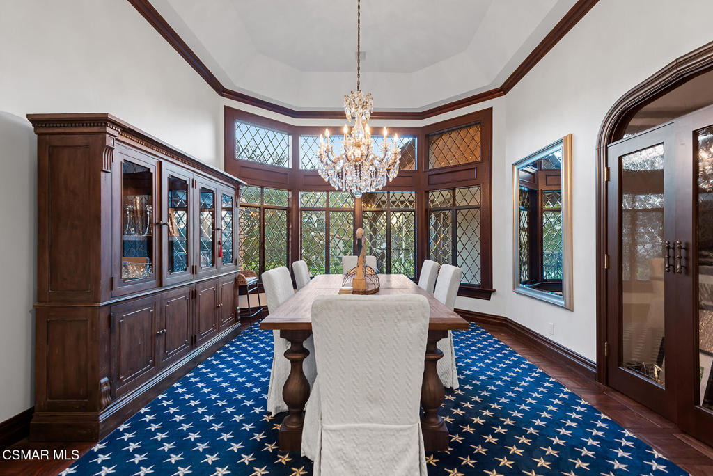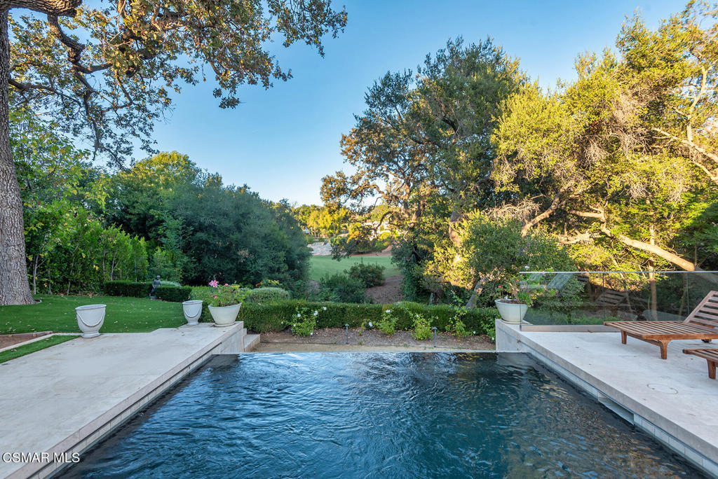 Absolutely exquisite timeless traditional with a premier location in the heart of North Ranch! This nearly 5400 square foot beauty shows true pride of ownership with an abundance of character, upgrades and state of the art designer finishes throughout! Boasting sensational views of the fairway of North Ranch Country Club, this stunning custom estate is surrounded by mature trees providing one of the best settings in the area! Features include soaring wood beamed ceilings, a recently updated center island kitchen, jaw dropping family room with wet bar and new wine center and so much more! All secondary bedrooms are over sized and en-suite and the primary is graced with a fireplace, sitting area, oversized finished walk in closet and a beautiful bathroom with a view! The grounds are amazing! There is a low maintenance infinity pool, bbq center and an abundance of usable drought tolerant turf, massive mature trees and a epic fairway view. All with rare total privacy! A very special offering!