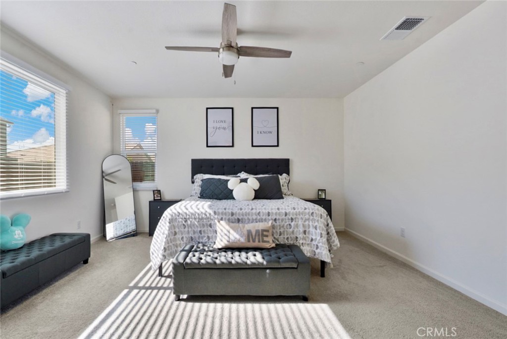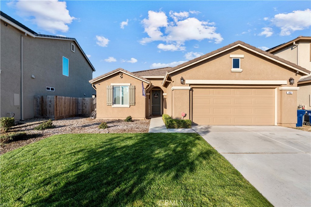 This modern 3-bedroom, 2-bath home, built in 2022, offers the potential for a 4th bedroom and features upgraded wooden cabinets, sleek quartz countertops in the kitchen, and dual-pane windows throughout. Both bathrooms come with dual sinks for added convenience, while the backyard is equipped with low-maintenance turf grass. For comfort and efficiency, the home includes a whole-house fan, attic fan, and leased solar panels. Additionally, the garage has electrical wiring ready for an EV charger. Located just down the street from Freeway 99 in southeast Merced, you'll enjoy easy access to commuting routes, shopping, dining, and more. Don't miss your chance to own this beautifully upgraded, move-in-ready home!
