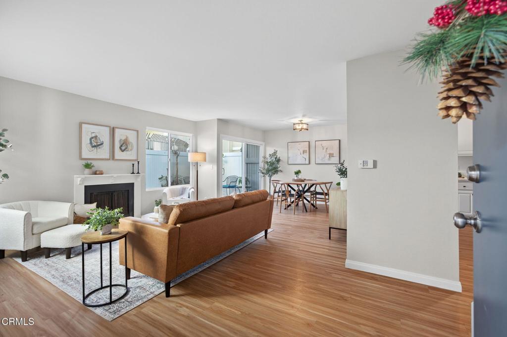 Live stylishly at Ralston Village! A great option for VA buyers! Welcome to your beautifully refreshed townhome in one of Ventura's most convenient communities. Perfectly positioned near the pool and spa, this home offers a rare combination of comfort, style, and location within Ralston Village. Step inside to discover nearly 1,100 square feet of light-filled living space, freshly updated with modern finishes at an exceptional price! The kitchen and baths shine with new quartz countertops, updated fixtures, and freshly painted cabinets, while the bedrooms feature brand new carpet and baseboards for a soft, inviting feel. The primary bedroom offers a walk-in closet and ensuite bathroom. The open-concept living area includes a cozy fireplace, newer LVP flooring, newer A/C (2019), in-unit laundry, and dual-paned windows that create a sense of warmth. Enjoy relaxation on your private patio, just steps away from lush landscaping and the resort-style amenities that make this community so special. HOA amenities feature a pool, spa, and tennis courts for active living. The 2-car garage, located conveniently close to your front door, adds everyday ease. HOA dues cover water, trash, and sewer, making this home effortless living and exceptional value. You are just minutes from Ventura's beaches, parks, shopping, dining, coastal trails and freeway access. Updated, move-in ready, and perfectly placed!