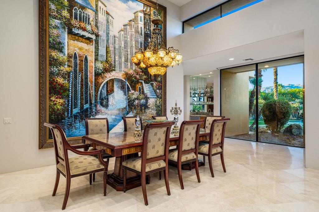 This private Custom Contemporary Rancho Mirage Estate is situated in Serrano, an exclusive gated enclave offering some of the best south & west panoramic views in Rancho Mirage. Set on 1.09 acres of manicured, park-like grounds, this estate features 5 bedrooms and 7 bathrooms, including separate primary and guest wings for ultimate privacy.Elegant formal living and dining room boast fireplace and walls of glass to capture stunning mountain views. The spacious family room features a built-in entertainment center, breakfast area, and bar, flowing seamlessly to a gourmet chef's kitchen with Wolf and Sub-Zero appliances. The luxurious primary wing offers a fireplace, sitting area, and his-and-her spa-inspired bathrooms.The guest wing provides a sitting area, gym/office with bar and refrigerator, plus multiple luxurious guest suites with stone finishes, steam showers, jacuzzi tubs, and separate climate controls. A fully equipped separate guest room with full kitchen ensures privacy for visitors. Additional highlights include a gated driveway and 5-car garage accessible from both the main house and guest wing, plus resort-style outdoor spaces perfect for entertaining or relaxing under breathtaking desert skies.