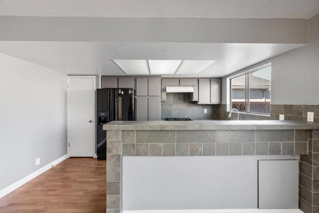 Welcome to this spacious 1,814 sq. ft. home located in the charming city of Hollister. This property offers 4 bedrooms and 2 full bathrooms, designed with a shower and tub setup. The kitchen is highlighted by a tile countertop and an eat-in area, perfect for family meals and entertaining. Additional dining space is provided in the formal dining area. The separate family room offers a cozy atmosphere, complemented by a fireplace ideal for relaxing evenings. Flooring throughout the home is updated with durable laminate, adding to the home's modern feel. For your comfort, the home is equipped with central AC and central forced air heating. The property is situated on a 5,959 sq. ft. lot, offering ample space for outdoor activities. Located within the Hollister Elementary School District, this home provides an excellent base for learning and growth. Don't miss out on this fantastic opportunity!