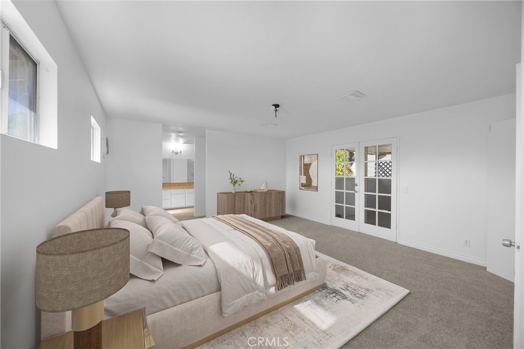 A spacious two-story home offering 4 bedrooms, 3 bathrooms, and a flexible floor plan ideal for both family living and entertaining. Step inside to find fresh interior paint, brand new carpet in all bedrooms, dual zone central AC, and a new water heater. The main level features multiple living spaces filled with natural light, highlighted by skylights and French doors that open to a covered patio and private backyard, perfect for relaxing or entertaining outdoors. The kitchen offers generous cabinet and granite counter space with a convenient breakfast bar overlooking the open dining and family areas. Upstairs, the entire top floor serves as a private primary suite retreat with an oversized walk-in closet, dual-sink bathroom, and French doors leading to a large balcony overlooking the yard. A charming street presence, attached garage, and central Santa Ana location close to local parks, schools, and freeways make this a wonderful opportunity to own a move-in-ready home with great space and potential.
