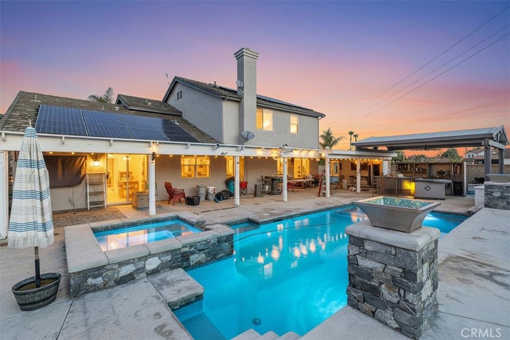 Experience luxury living in the prestigious Remington Estates community of Norco. This expansive 3,632 sq ft estate offers 5 bedrooms, an executive office, a spacious loft, and 3.5 beautifully appointed bathrooms. Thoughtfully designed for both comfort and entertaining, the home features formal living, dining, and family rooms that blend seamlessly to create an inviting and elegant atmosphere. The custom chef’s kitchen is the centerpiece of the home, showcasing Quartzite countertops, a large island, premium finishes, and a well-equipped butler’s pantry. The main-level primary suite provides a private sanctuary, complete with direct access to the office, perfect for a personal workspace or retreat. The suite also features patio access, a generous walk-in closet, and a luxurious bathroom with a custom vanity and sink, along with a separate soaking tub and shower. Upstairs, a versatile loft/game room complements four additional oversized bedrooms, offering comfort and flexibility for guests, family, or multi-generational living. With numerous upgrades throughout the home, this residence must be seen in person to be fully appreciated. Set on a sprawling 0.65-acre lot, the property delivers an exceptional outdoor lifestyle. Enjoy resort-style amenities including a saltwater pool, outdoor kitchen, expansive covered patio, an impressive RV parking approximately 20'×75' with RV direct waste disposal system. Additional standout features include 40 owned solar panels, a 30x50 workshop with its own electrical panel, an attached 3-car garage, additional detached 2-car garage, a large storage shed, and meticulously maintained landscaping that enhances the estate’s curb appeal. Situated in one of Norco’s most desirable neighborhoods, this home offers unmatched space, craftsmanship, and functionality—along with the added benefit of low taxes and no HOA. This is an extraordinary opportunity to own a true Norco luxury estate.