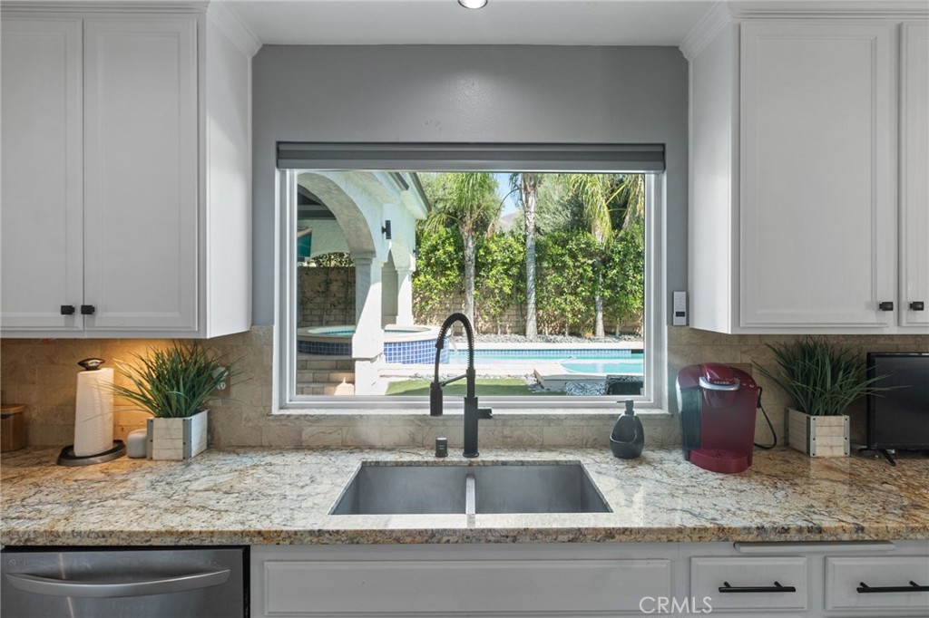 Back on the Market! Luxury Living w/ Sparkling Pool & Spa in a Private Gated Community – Fully Upgraded & Move-In Ready! Welcome to your private retreat—where luxury living meets smart investing. This beautifully remodeled four-bedroom, three-bath home offers nearly 2,200 sq. ft. of open, light-filled living space with cathedral ceilings, plantation shutters, and modern finishes throughout. The chef’s kitchen features granite countertops, travertine backsplash, and a large picture window framing stunning mountain views and your entertainer’s backyard. Every detail has been upgraded for comfort and efficiency, from the durable vinyl flooring and all-new lighting to the 2025 HVAC system and Tesla solar setup. The primary suite feels like a resort, complete with dual walk-in closets, soaking tub, and walk-in rain shower. Step outside to a private backyard paradise—heated pool and spa with LED app-controlled lighting, oversized covered patio, and lush privacy ficus trees. Located on a quiet cul-de-sac in a secure gated community with easy access to schools, shopping, and major freeways, this home blends elegance, energy efficiency, and financial advantage. Don’t wait—schedule your private showing today and take advantage of this exceptional offer before it’s gone!