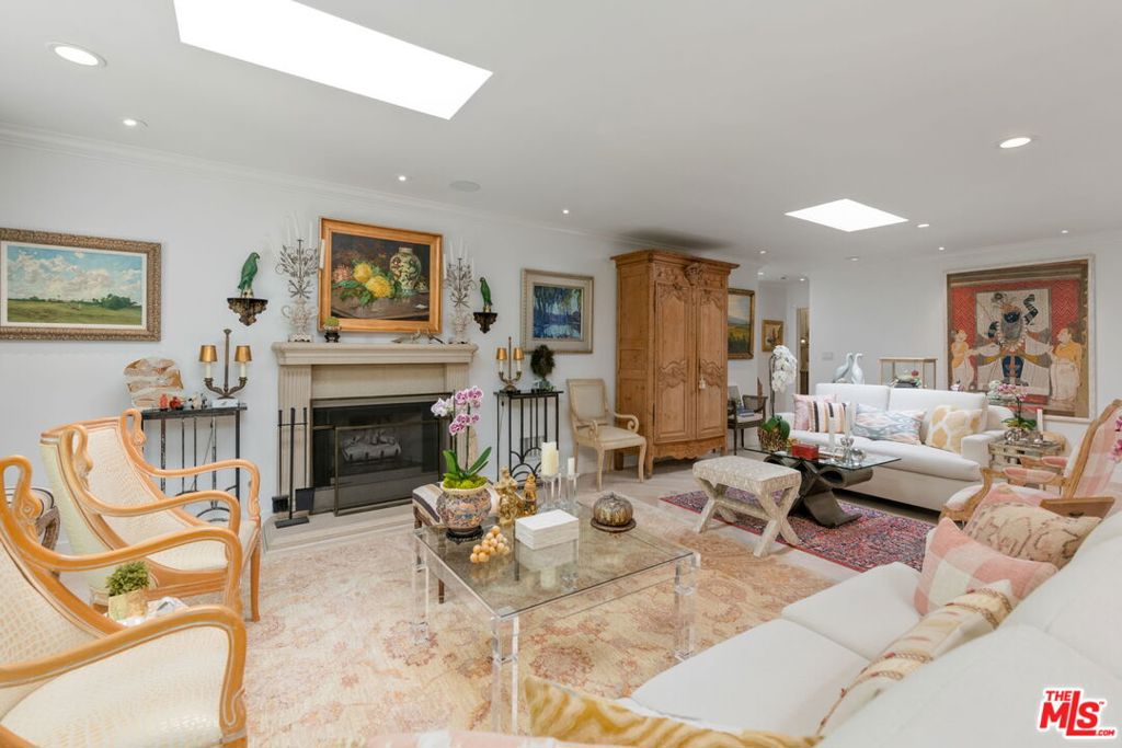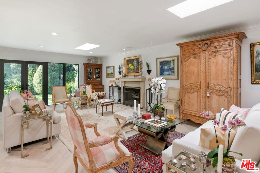Extensively remodeled with exquisite taste and superior quality, this very special, light and bright one-story home harmoniously blends comfort and style and has been meticulously and painstakingly maintained. Its open and sensible floor plan begins at the formal foyer, leading to the sky-lit living room and dining area designed with the elegant entertainer in mind. This very expansive area, with its light-hued herringbone-patterned wood floors and two stone-clad fireplaces, opens easily to the backyard for seamless indoor-outdoor flow. The family room is warm and cozy with its wet bar and fireplace and opens to the fabulous outdoor living and dining room, complete with a barbecue area, outdoor fireplace and comfort heaters. The chef's kitchen has a breakfast area, quartz countertops, stainless steel appliances and double ovens. There are four bedrooms in total. The primary suite, also opening to the backyard, is truly wonderful with its ample closet space, many built-ins, beautiful spa-like bath and sitting area. Adjacent are two spacious bedrooms sharing a tasteful hall bath. The fourth bedroom is located by the kitchen, perfect as a gym, nanny's or housekeeper's room. The backyard is nothing short of glorious, every inch professionally landscaped. A true paradise, there is natural beauty to behold everywhere, all amidst the soothing sounds of an artfully-crafted cascading waterfall. There's also a separate multi-purpose art studio in the backyard, as well. Extensive updates, many of them quite recent, include central air and heat, metal doors and windows, many exquisitely-crafted built-ins, multiple skylights, recessed lighting, art-focused lighting, a separate generator connected also to the gas line, a Tesla car charging port, a new roof, a security system and so much more. The garage has extra storage and offers direct access into the house. Please ask the agents for a comprehensive list of updates. Inclusion in the very desirable public school districts which include Kenter Elementary School, Paul Revere Middle School and Palisades High School. All this, moments from the town center with all the shopping, dining and services that Brentwood offers.