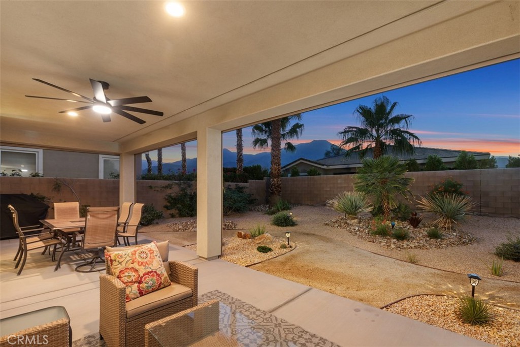 Welcome to the 55+ Community of TRILOGY in La Quinta. This beautifully decorated Oasis floor plan offers 2 bedrooms 2 bath with approximately 1580 Sq. Ft. of living space with many recent updates to furnishings. The kitchen features a center island with granite counter tops, and all stainless steel appliances. The walls have been freshly painted, and new carpeting installed just last year in both bedrooms. Relax in the backyard on the patio furniture and watch the sunrise on the beautiful Santa Rosa Mountains. This beautiful home is located within walking distance to the Clubhouse. The Trilogy Community Clubhouse features many amenities that includes a pool, jaquzzi, lap pool, gym, pool table, pickle ball courts, tennis courts, Bocci Ball, a Cafe, and even a Day Spa to enjoy. Minimum 30-day rental. Call for Pricing and availability! Home is Leased Nov 15th thru Mar 31st,2026.