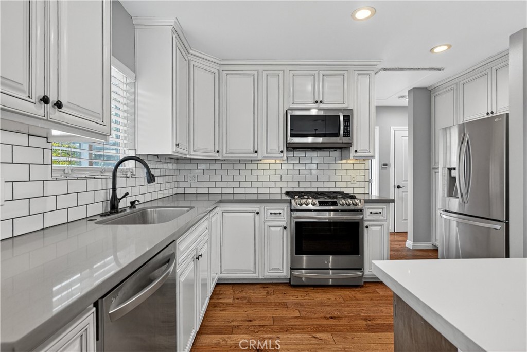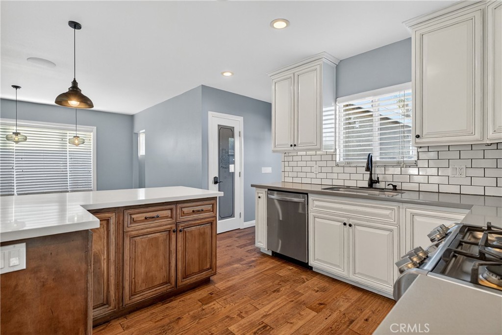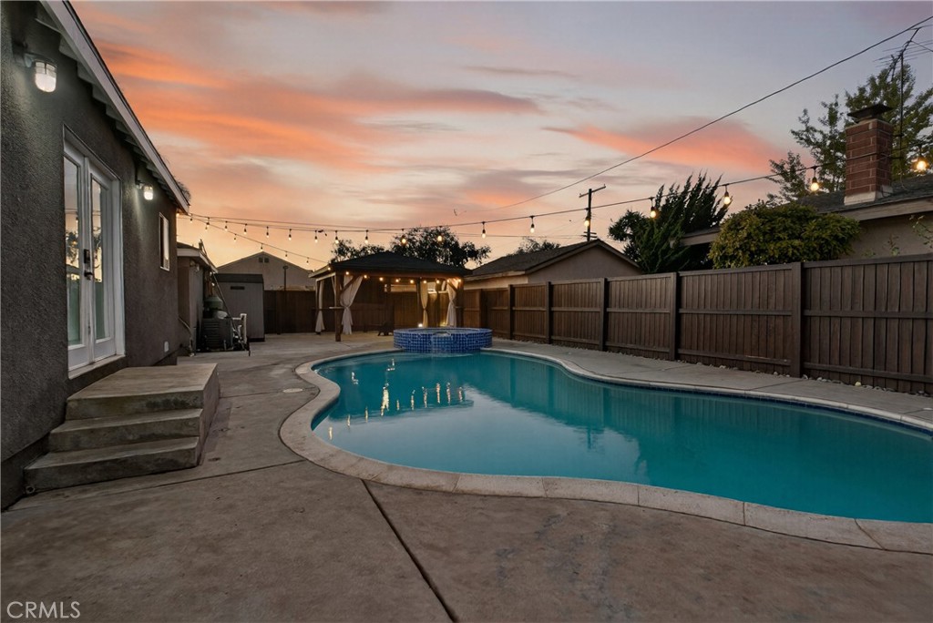 Prepare to fall in love! This beautifully updated home is full of thoughtful upgrades and standout features, including a major renovation & addition completed in 2017, central A/C, and a stunning saltwater Pool. Step inside to an inviting, open-concept living space highlighted by rich distressed hardwood flooring that flows seamlessly throughout. Also featuring built in surround sound speakers in the living room. The kitchen is an entertainer’s dream with a spacious quartz island and breakfast bar, sleek white cabinetry, and stainless steel appliances. A walk-in pantry sits conveniently nearby, along with a laundry room for added charm and functionality. Two front bedrooms share a stylishly remodeled bath featuring a subway-tiled walk-in shower. One bedroom includes a cozy nook currently used as a home office—perfect for remote work or easily convertible into a walk-in closet. The addition boasts a third bedroom plus an impressive primary suite, complete with two walk-in closets, a spa-style bathroom with an oversized subway-tiled shower, and dual sink vanity. French doors open to a resort-inspired backyard oasis showcasing an 8-ft deep saltwater pool and spa, gazebo, outdoor bathroom, redwood fencing, and a 2-car garage with alley access. Ideally located near freeways, shopping, dining, parks, the beach, and the incredible SoFi Stadium—this home truly has it all. Opportunities like this don’t come around often!