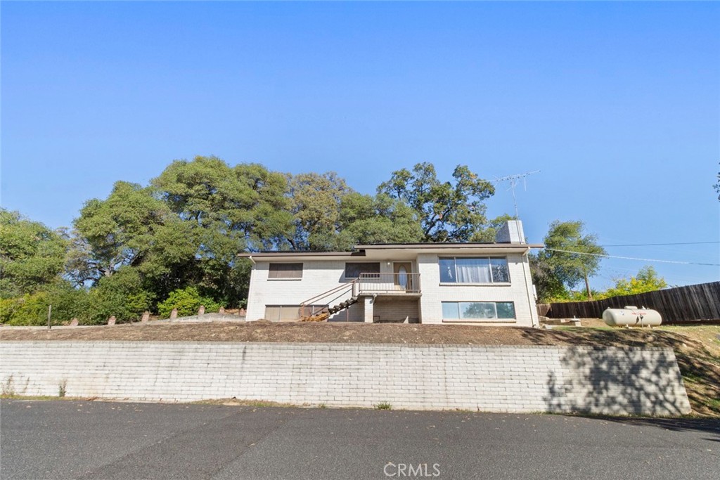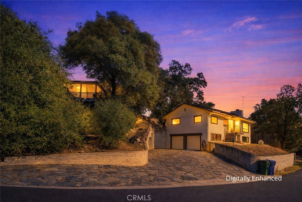 Perched among mature oaks and custom stonework, this beautiful two-story home blends mid-century charm with modern updates and versatile living spaces. This unique home showcases thoughtful craftsmanship and unique architectural details that set it apart from anything else you've seen. Upstairs, you'll find a bright, inviting living space with large picture windows that flood the home with natural light. The open layout connects the living room, dining area, and kitchen seamlessly, creating a perfect environment for gathering and entertaining. The living area features fresh paint, warm flooring, and hillside views, while the kitchen boasts updated counters, freshly refinished cabinetry, and a large window that overlooks the oak-filled backyard. Down the hall, two spacious bedrooms feature generous proportions and beautiful natural light, with peaceful views of the property's natural landscaping. The hallway bathroom has been recently remodeled with a new tub and shower surround, new fixtures, and modern lighting for a clean, bright feel. The primary suite offers ample room, dual windows for light and air, and a freshly remodeled en-suite bathroom complete with a new vanity, new shower surround, and tasteful finishes. Downstairs, a completely separate living area provides incredible versatility. This studio-style space features a huge living area anchored by a custom fireplace, sleek concrete floors, fresh paint with accent wall, and new lighting throughout. The attached kitchenette and full bathroom make it ideal for multi-generational living, a private guest suite, or potential rental income - a perfect opportunity for flexibility and independence. Outside, the backyard is an absolute showpiece - a one-of-a-kind combination of artistry and nature. Handcrafted local stone retaining walls, large brick patios, and massive decorative boulders weave together into a tranquil, low-maintenance landscape under the shade of mature oak trees. It's the kind of outdoor space that feels timeless, peaceful, and truly connected to its surroundings. Additional highlights include a two-car garage, solar energy system for efficiency and savings, and a location in one of the most desirable pockets of the foothills - where privacy, craftsmanship, and character converge. Welcome Home!!!