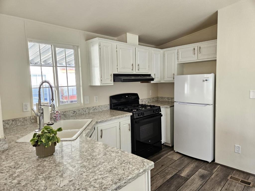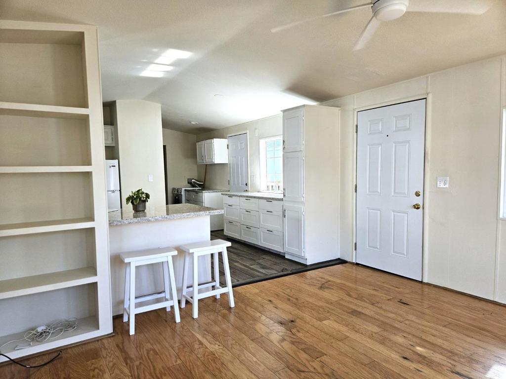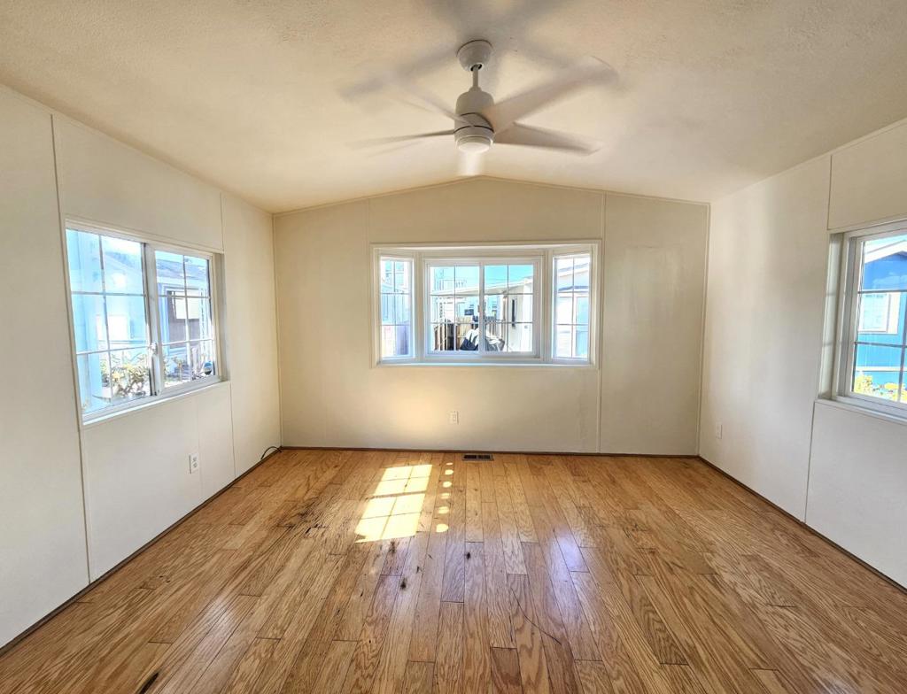 Enjoy seaside living in one of Santa Cruz's most iconic locations! Charming 1-bed home located steps from the Santa Cruz Beach Boardwalk, the Wharf and world surfing at Cowell's Beach! Situated in an all-ages, pet friendly, leased-land community, this open & bright home features recent upgrades including interior paint, a new gas range & refrigerator, newer roof, Trex decking and an all-in-one electric washer/dryer unit. Additional highlights include a stylish updated stone & tile bathroom, bay window, ceiling fans, on-demand water heater, and a freshly sealed carport. Space rent for new owner will be $1900/month. Amazing value in the sweetest and only Manufactured Home Park on West Cliff Drive!!
