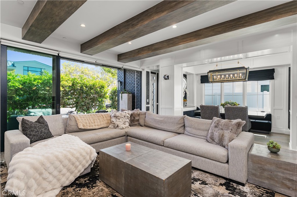 Available for the SUMMER beginning 6/4/26. Step into your dream home on one of the most coveted streets in Orange County. This custom-designed 4-bedroom, 4- bathroom residence on Peninsula Point offers a seamless blend of luxury, comfort, and coastal living. Impeccably furnished and move-in ready, this home is available for flexible lease terms with 30-day minimum stays and seasonal pricing. The open-concept main floor welcomes you with a sun-filled living room, dining area, and chef’s kitchen—all flowing through to multi-slide glass doors to a beautifully landscaped front patio. Perfect for entertaining or relaxing, the patio features a rectangular fire pit surrounded by a comfortable lounge area and mature greenery for added privacy. The gourmet kitchen centers around a stunning marble island with a farmhouse sink and seating for four. Equipped with top-of-the-line appliances including a 6-burner Wolf range, built-in refrigerator, coffee bar with microwave, and a butler’s pantry, this kitchen is designed for both casual and formal gatherings. A full bathroom on the ground floor provides easy access from the side of the home—ideal for rinsing off after a beach day. The 2-car garage, accessible from the alley, offers ample storage and includes a “garage fridge.” Upstairs, all four bedrooms are thoughtfully placed to maximize comfort and functionality. Two guest rooms share a stylish Jack and Jill bathroom, while the third guest room features its own en-suite bath with a tub and shower combo. A built-in desk in the hallway utilizes every inch of space efficiently, and a full laundry room with a sink and ample cabinetry adds convenience. The primary suite is a luxurious retreat. It includes a custom walk-in closet complete with shoe storage, jewelry drawers, and ample room for clothing and accessories. The bedroom opens to a private patio furnished with a seating area and fire pit, creating the perfect spot to unwind. The spacious master bathroom features dual sinks and an oversized walk-in shower. Crowning the home is the spectacular rooftop deck, designed for both relaxation and entertainment. Enjoy ocean views from the hot tub or relax in one of the two separate seating areas, one that has a fire pit. An enclosed rooftop studio enhances the space with a TV, fridge, microwave, and a reclining couch—creating a cozy, all-season retreat.