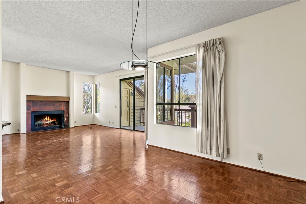 Experience refined living in this beautifully maintained upper-level retreat in the highly desirable Turtle Rock community. Perfectly set in a serene and picturesque environment, this home offers spectacular tranquil views of lush greenery. With an open-concept floorplan spanning 1,523 Sq. Ft., this elegant residence features two generously sized bedrooms and two bathrooms. The spacious living area showcases natural wood flooring, a cozy fireplace, and seamless access to a private oversized balcony—ideal for morning coffee or peaceful relaxation. An adjacent den adds versatility and can serve as a home office or media room. The light and bright updated kitchen provides abundant cabinetry along with premium new appliances, including a stove and microwave. The expansive primary suite includes a bathroom with separate dual vanities, ample mirrored closet space, a walk-in shower, and a private toilet room. Additional highlights include freshly painted interior, recessed lighting, central A/C, new laminate flooring in both bedrooms and hallway, full-size indoor laundry, and two-car garage. Enjoy the Turtle Rock lifestyle with wonderful HOA amenities such as an on-site jacuzzi, a nearby pool, an additional jacuzzi, tennis and basketball courts, a tot lot, Turtle Rock Community Park, and Bomber Canyon hiking trails. Conveniently located just minutes from fabulous beaches, world-class shopping, renowned golf courses, John Wayne Airport, top dining destinations, and more.. IUSD Award-winning Schools including University High. Great value for comfort and quality!