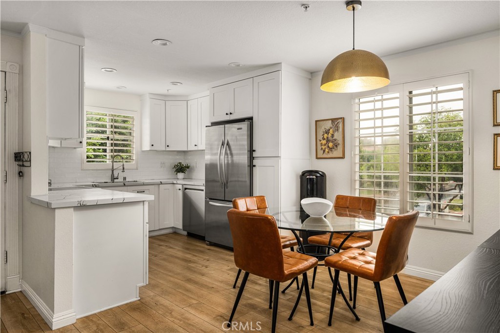 Welcome to the heart of East Orange/Santiago Hills, where this beautifully updated condominium combines modern luxury, comfort, in a serene natural setting. Nestled among lush green trees in a peaceful, nature-rich community, this home offers the neighborhood’s most sought-after floor plan—with no one above or below for ultimate privacy. Step inside to an inviting, open-concept layout featuring luxury vinyl plank flooring and elegant plantation shutters that elevate the home’s timeless appeal. The recently remodeled gourmet kitchen offers gorgeous quartz countertops, white shaker cabinetry, and modern stainless-steel appliances. The open floor plan allows for easy entertaining from kitchen to dining and living areas. The primary suite serves as a tranquil retreat, complete with a spacious walk-in closet and a luxurious walk-in shower. Convenient in-unit laundry and private garage located directly below the unit, equipped with an EV charger. Enjoy resort-style amenities, including two sparkling community pools, spa, clubhouse, and fitness center. HOA dues include water and trash services. Located within walking distance to award-winning Chapman Hills Elementary School. Moments from scenic walking trails and two regional parks—Peters Canyon and Irvine Regional Park—perfect for hiking, biking, and outdoor enthusiasts. Nearby, you'll find grocery and specialty stores, retail shops, cafés, yoga and pilates studios, and more, making everyday living incredibly convenient.