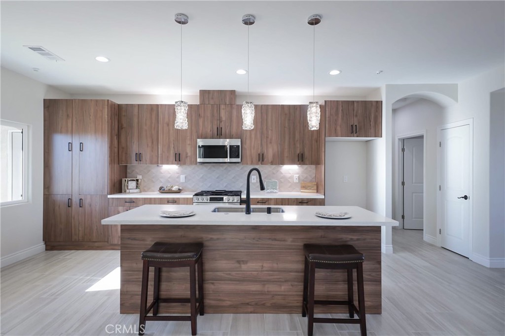 Semi Custom Home!!! This 1,908 sq ft home features 3 bedrooms, 1.75 bath, open kitchen to the family and dinning room, tile throughout all common areas, ceiling fans in all bedrooms and living room including an electrical fireplace for those cozy winter nights. The master suite includes an en-suite bathroom with a large enclosed shower and walk in closet. All upgrades come included in this home such as quartz countertops, energy efficient stainless steel appliances and did I mention PAID SOLAR!!! Located in a corner lot which includes RV parking. This house has pristine landscaping and great curve appeal.